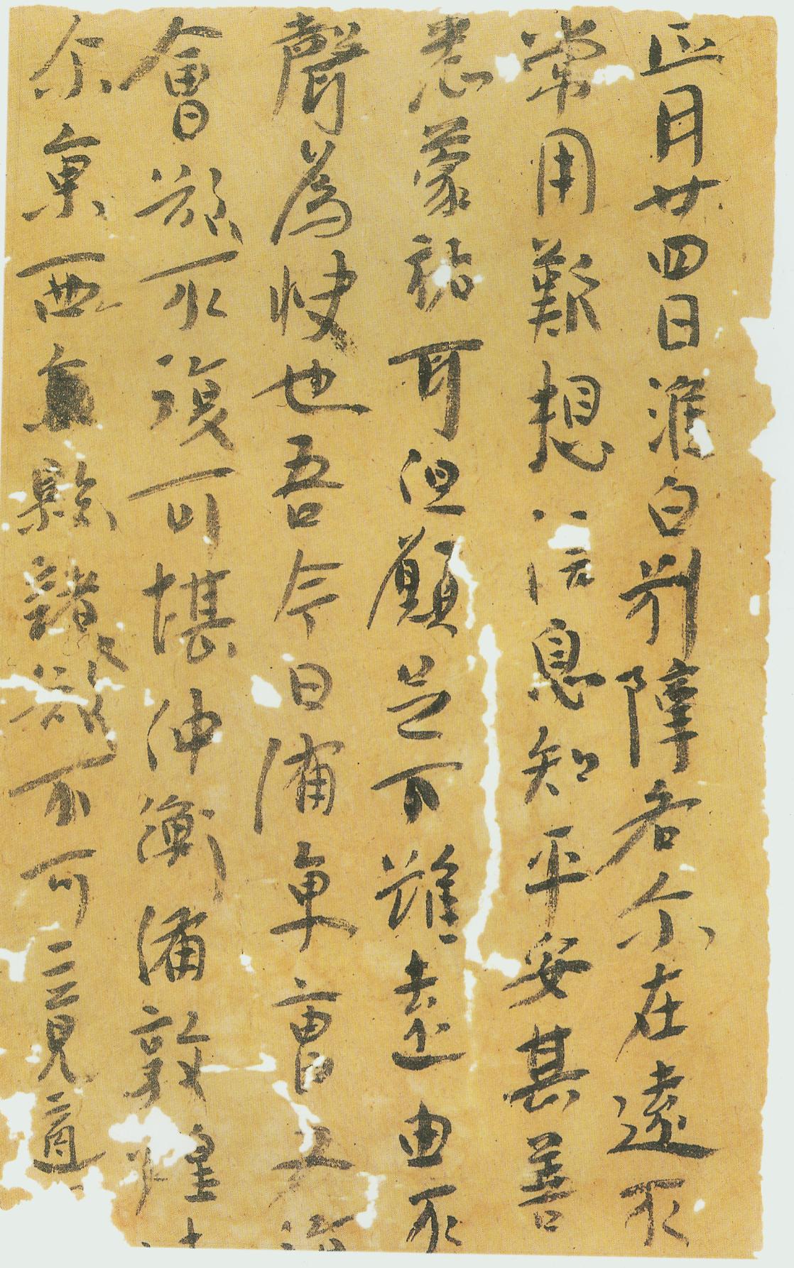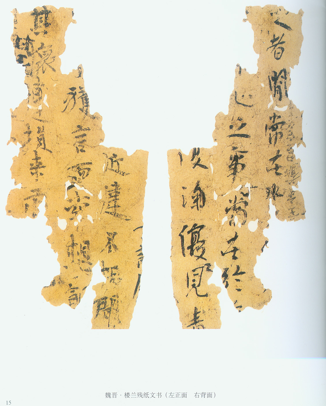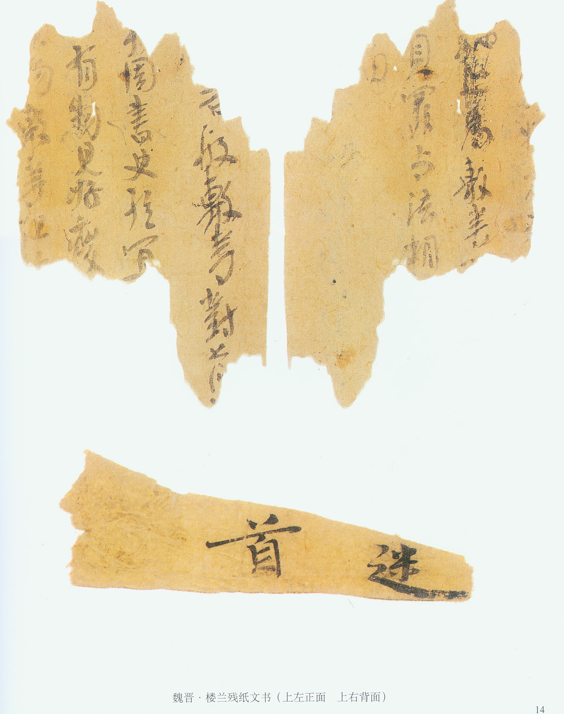 楼兰遗址发现的这些墨书的残纸和木简,残纸中有西晋永嘉元年(307)和永嘉四年的年号,这批残纸当是西晋至十六国的遗物,其内容除公文文书外,还有私人的信札和信札的草稿,书体除介乎隶楷之间的楷书外,还有行书和草书,这些残纸是研究魏、晋、十六国书法的宝贵资料,不但使我们得以窥见 晋人的真实用笔,而且为研究当时书风的演化提供了实证。