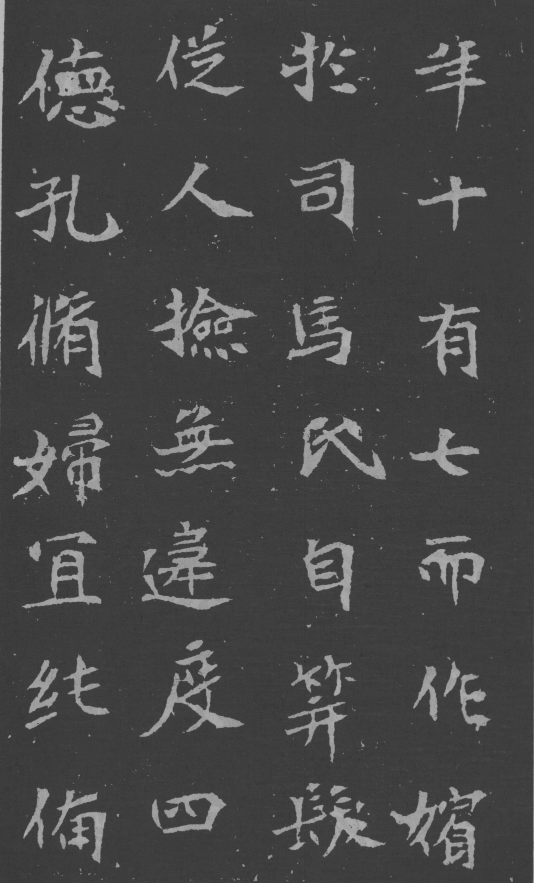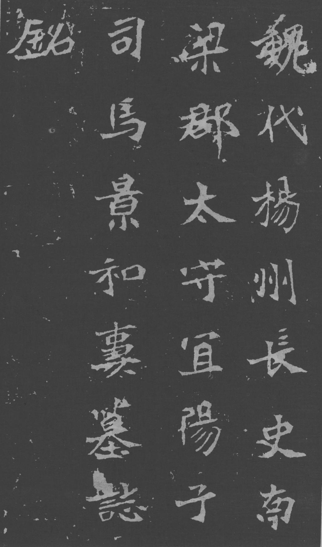 释文: 魏代杨州长史南梁郡太守宜阳子司马景和妻墓志”铭”夫人姓孟,字敬训,清河人也。盖中散大夫之幼女,陈郡”府君之季妹。夫人资含章之淑气,禀怀叡之奇风,芬芳”特出,英华秀生,婉问河洲,鼓钟千里。年十有七而作嫔于司马氏。自笄发从人,捡无违度,四德孔修,妇宜纯备。”奉舅姑以恭孝与名,接娣姒以谦慈作称。恒宽心静质,”举成物轨,谨言慎行,动为人范。斯所谓三宗厉矩,九族”承规者矣。又夫人性寡妒(女忌),多于容纳,敦桃夭之宜上,”笃小星之逮下。故能庆显螽斯,五男三女,出入闺闱。讽”诵崇礼,义方之诲既形,幽闲之教亦着。然尽力事上,夫”人之勤;夫妇有别,夫人之识;舍恶从善,夫人之志;内宗” 加密,夫人之恤;姻于外亲,夫人之仁。夫人有五器,而加”之以躬检节用。岂悟天道无知,与善徒言,享年不永,凶”图横集。春秋卌有二,以延昌二年夏六月甲申朔廿日”癸卯遘疾奄忽,薨于寿春。呜呼哀哉。粤三年正月庚戌”朔十二日辛酉归葬于乡坟河内温县温城之西。实以营原兴垄,竁野成丘,故式述清高,而为颂云:”穆穆夫人,乘和诞生,兰聚蕙糅,玉润金声。令问在室,徽”音事庭,方孚洪烈,范古流名。如何不淑,早世徂倾,思闻后叶,刊石题诚。