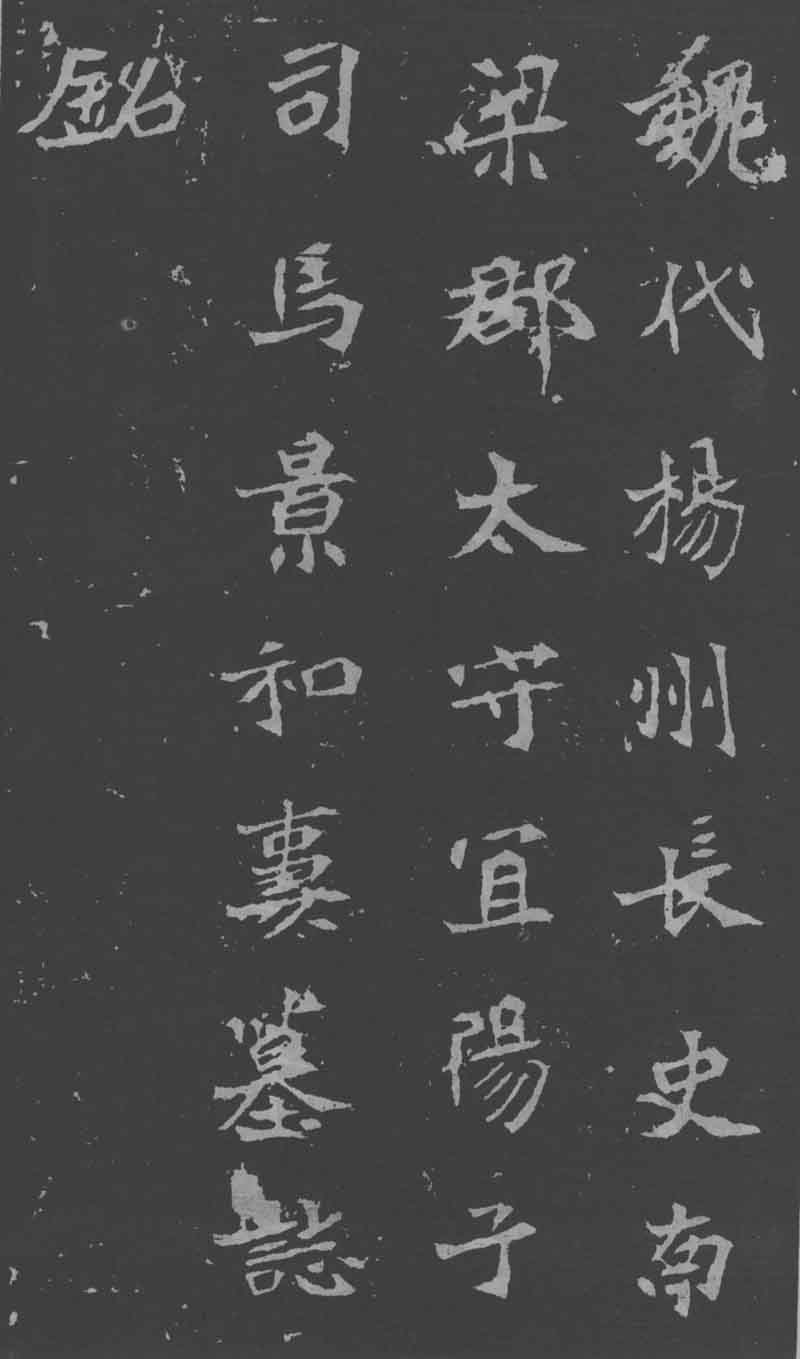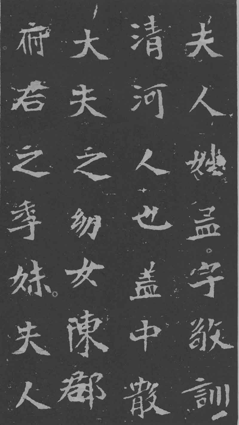北魏《司马昞妻墓志铭》,即《孟敬训墓志》,全称《魏代扬州长史南梁郡太守宜阳子司马景和妻墓志铭》,又称《司马景和妻墓志铭》、《司马昞妻孟敬训墓志铭》。北魏延昌三年(514)正月刻,楷书,20行,行21字。原石已佚。清乾隆二十年河南孟县八里葛村出土。同时出土的还有《司马昞墓志》、《司马升墓志》、《司马绍墓志》,合称“四司马墓志”。四志中以此志最好。