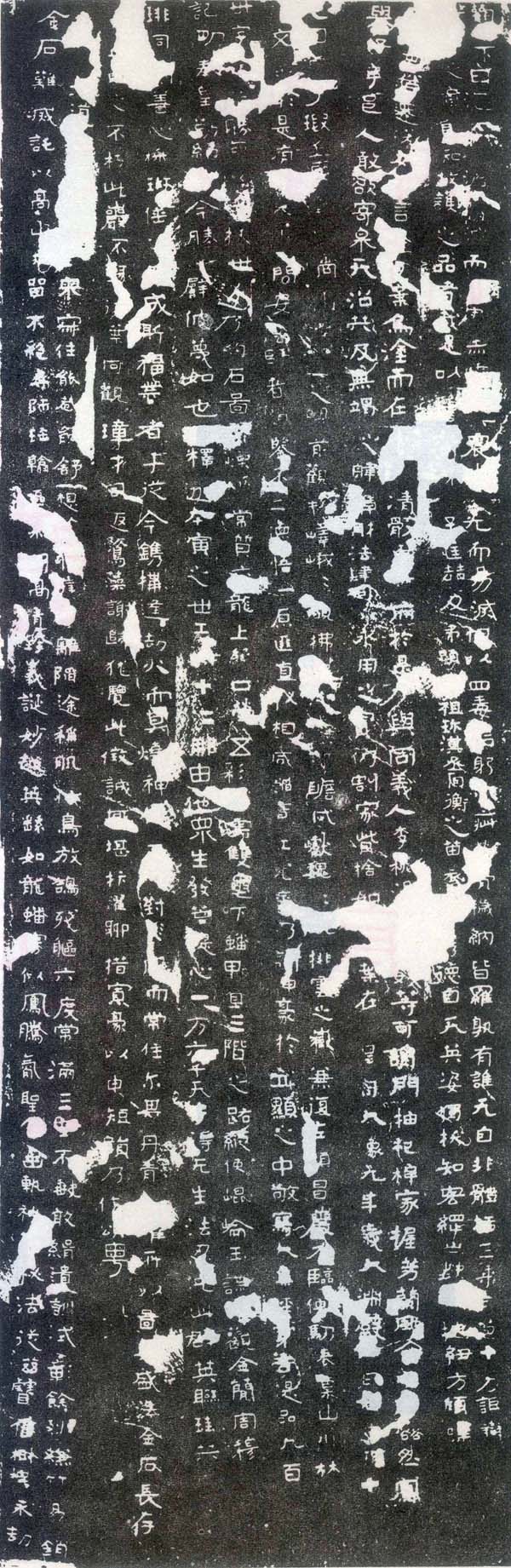 囗囗大道,囗若囗囗,空来寂住,能卷能舒。想囗囗崖,远离陷途。称肌代鸟,放鸽残躯。六度常满,三空不缺。敢辑遗训,式彰余烈。缣竹易销,金石难灭,托以高山,永留不绝。寻师宝翰,区囗囗高。清跨羲、诞、妙越英、繇,如龙蹯雾,似凤腾霄。圣囗幽轨,神囗秘法,从兹宝囗,树标永劫。