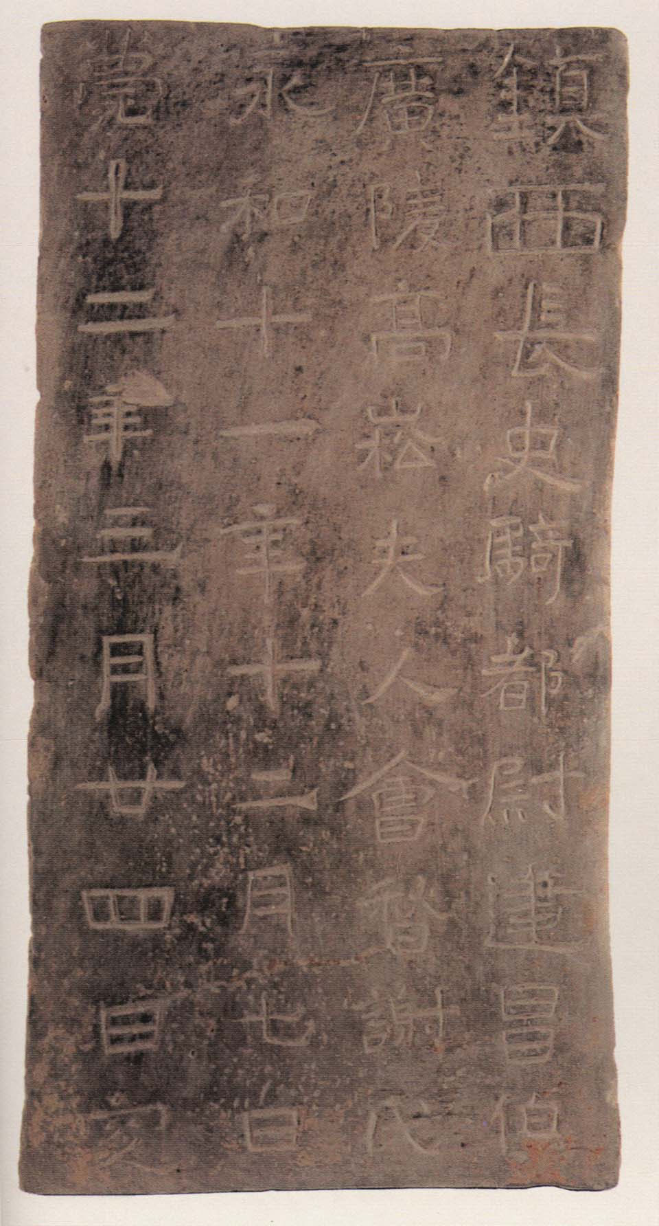 东晋《高崧夫人谢氏墓志》,长方形青灰大砖,单面双刀阴刻,志长50.5厘米、宽25.2厘米、厚6厘米。