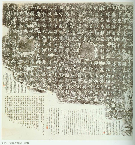 碑记就窟壁作成,现存304字,个个遒劲挺秀,笔力极工,书法艺术精湛。清末著名学者梁启超得友人相赠之初拓本,极为喜爱,评其为“天骨开外,光芒闪溢”,康有为亦称之为“元魏诸碑之极品”。