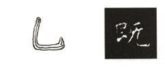 此折先写横画,收笔时提笔立正,笔略偏右下行,势如弯腰,显得韧而有力,与左竖相对应。