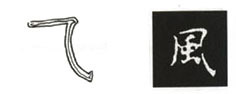 先作横,势向右上微斜,转折处提笔调锋,然后向内凹直下,再向外弯,再提笔调锋向右上出钩。有弯度,用笔宜轻重适当。