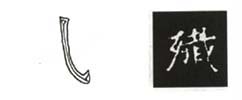 此钩以柔取势婀娜多姿有韧劲、有力度,有“张黑女”的特色。起笔逆锋,下笔先作直点,再提笔调锋向右下力行,先凸后凹,顿挫运行,至收笔处调正笔锋向上钩出。