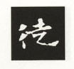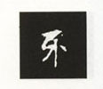 有时为使一个字的布局更均匀,重心更平稳,可用补空之法。如此“牙”字的点画份量偏左,在右边回一小点,是谓补空。