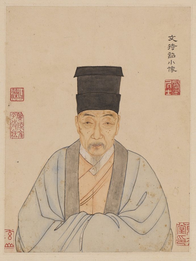 早年因为字写得不好而不许参加乡试,因而发愤图强,终于成为诗、文、书画方面的全才。绘画方面,与弟子成为“吴门派”,“吴门画派”创始人之一;又和沈周、唐寅、仇英合称“明四家”;与唐伯虎、祝枝山、徐祯卿并称“江南四大才子”(也称吴门四才子)。书法各体无一不精,尤其以行书、楷书为人所称道,在当时名重海内外。文徵明享年90岁,年高望重,门生有多,是“吴门四才子”中最长寿的一位。他年近九十岁时,还孜孜不倦,为人书墓志铭,未待写完,“便置笔端坐而逝”。