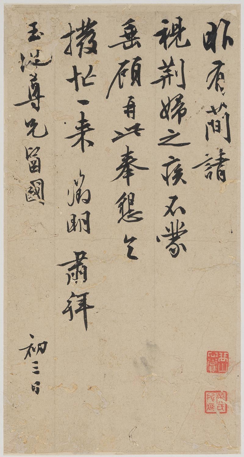 前吴复去曾寄一书,想已收得,此月初二日,得□□情,六月廿日所寄家书,知旅次琐琐,颇不得童仆之