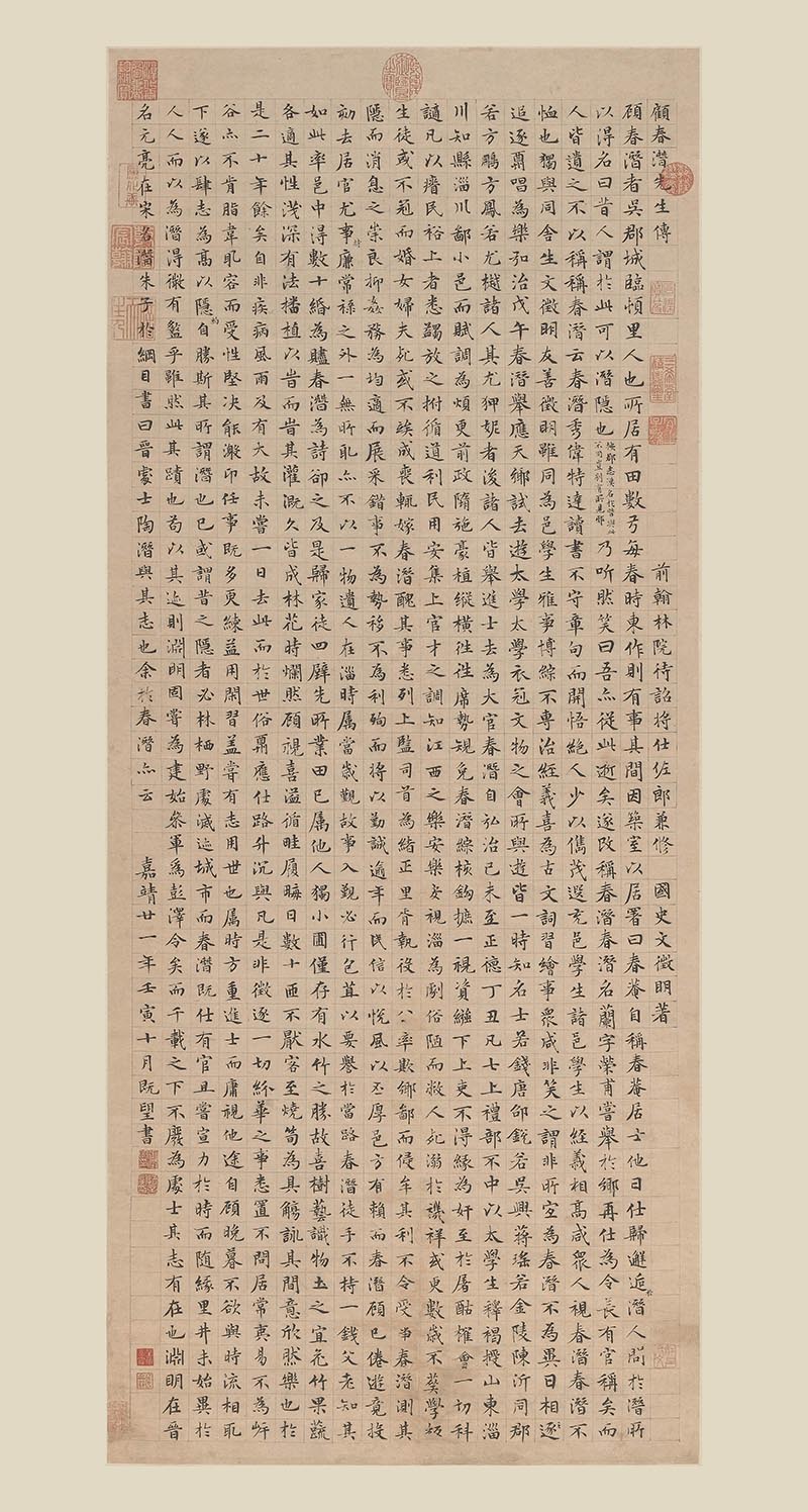 文徵明《楷书顾春潜传轴》 纸本楷书 118.4×49.7cm 1542年 上海博物馆藏