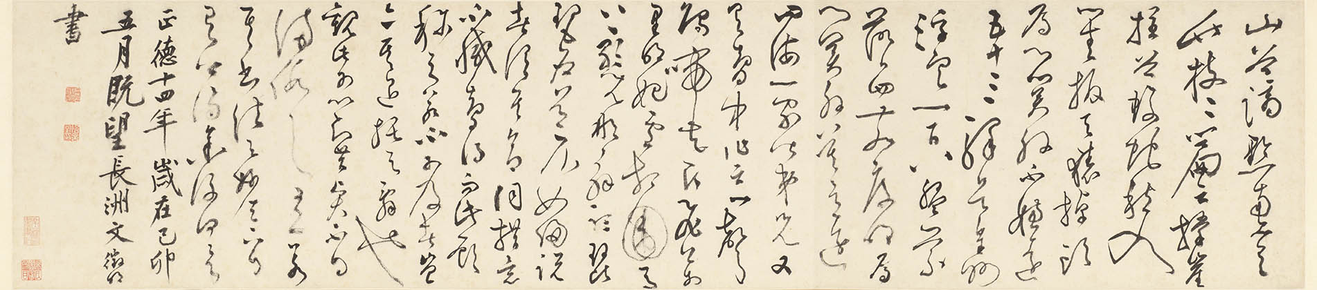 文徵明《草书跋黄庭坚刘梦得竹枝词卷 》纸本 29.5×133.4cm 1519年 无锡博物院藏