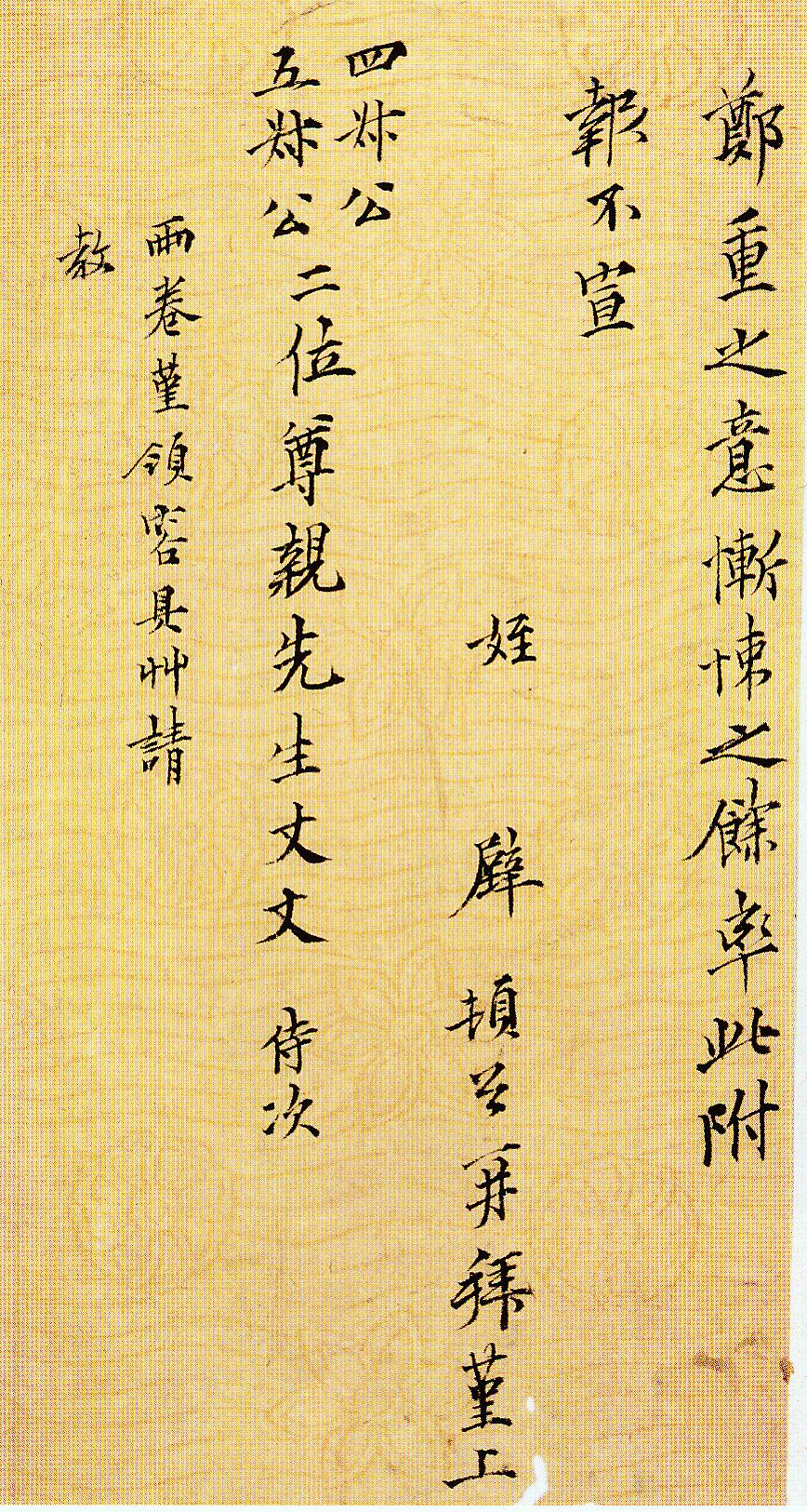 款署:“侄壁顿首再拜堇上。四叔公、五叔公二位尊亲先生丈丈。”