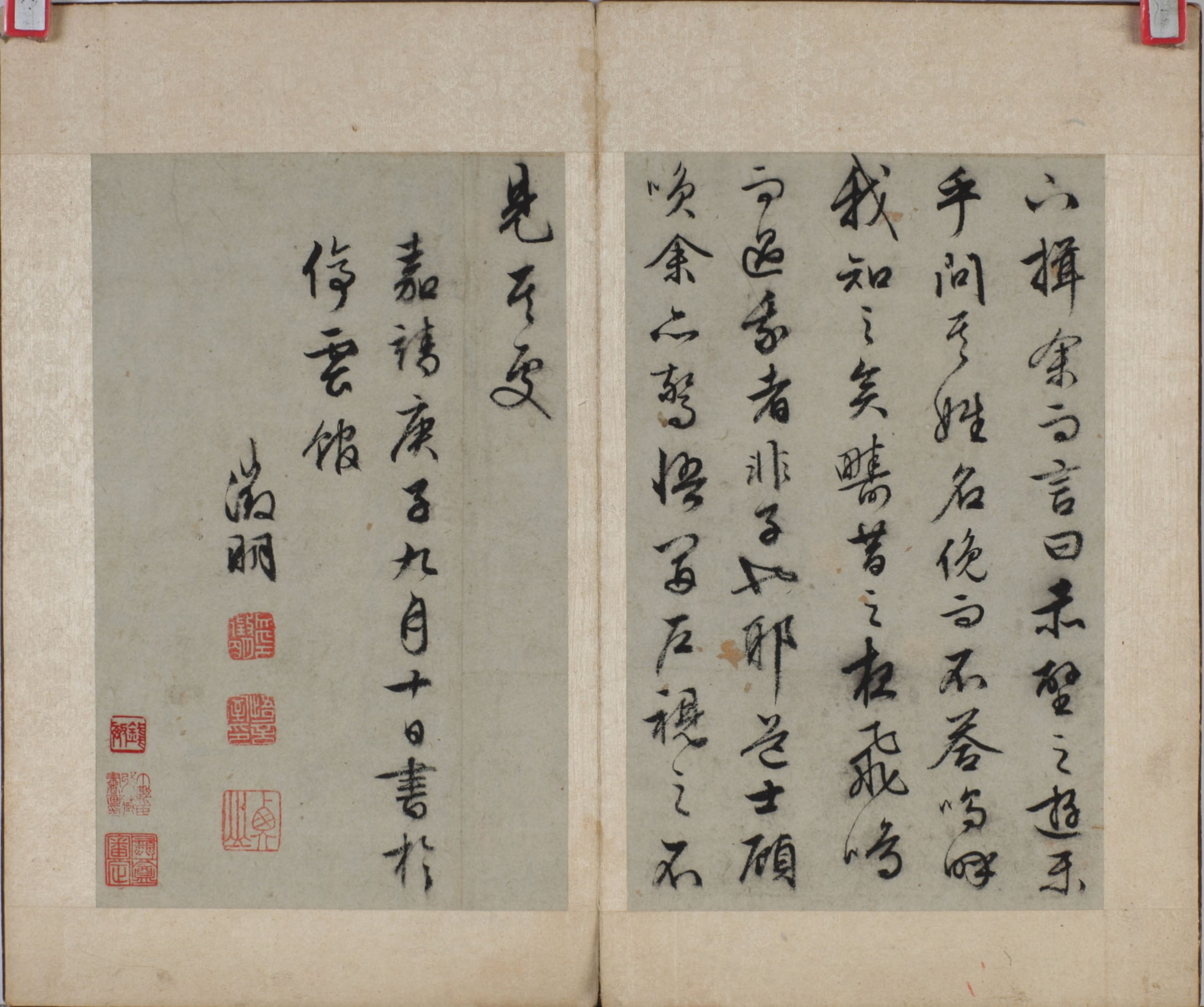 释文:略 款识:嘉靖庚子(1540年)九月十日书于停云馆。徵明。 钤印:文徵明印(白文)、悟言室印(白文)、衡山(朱文)