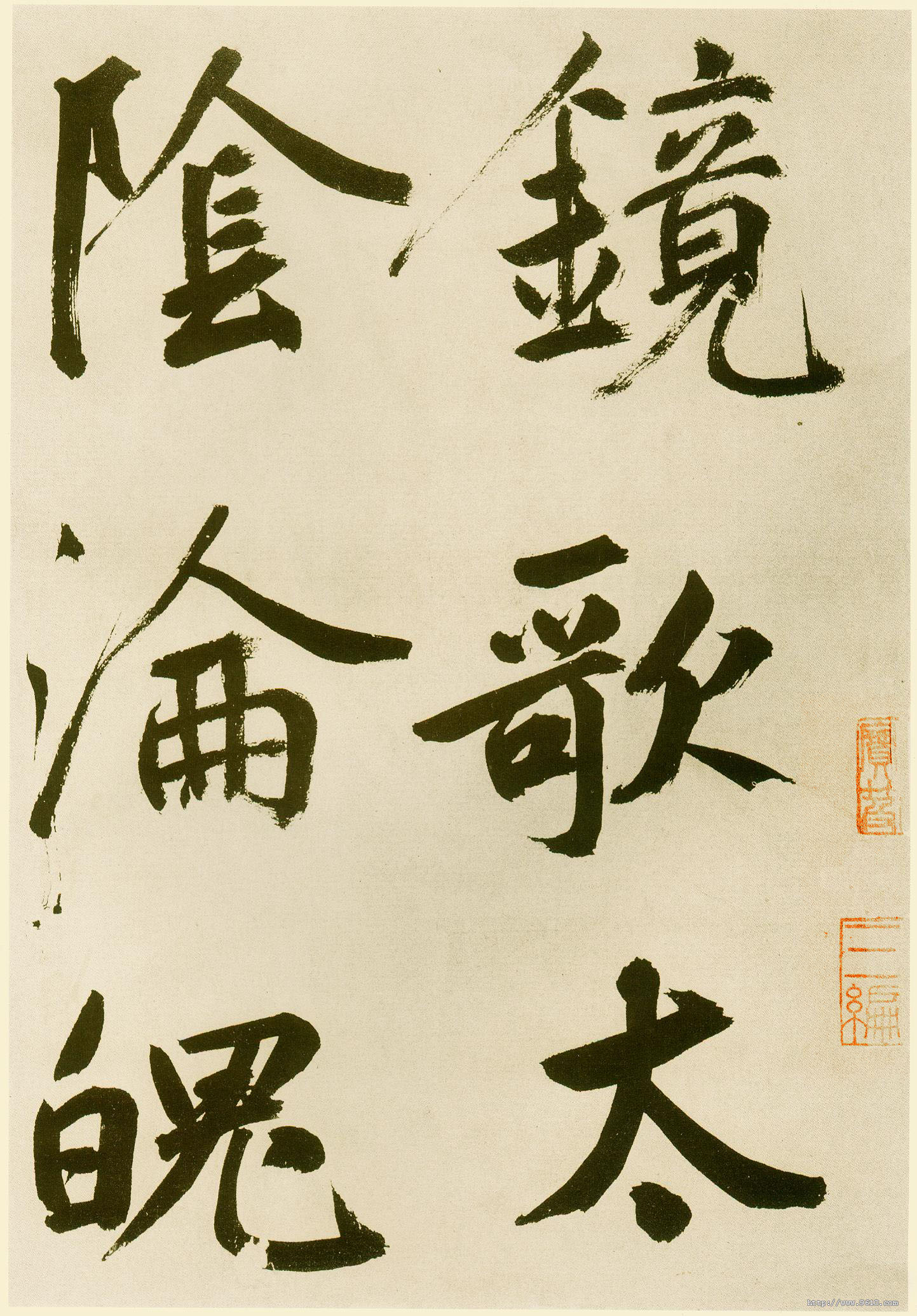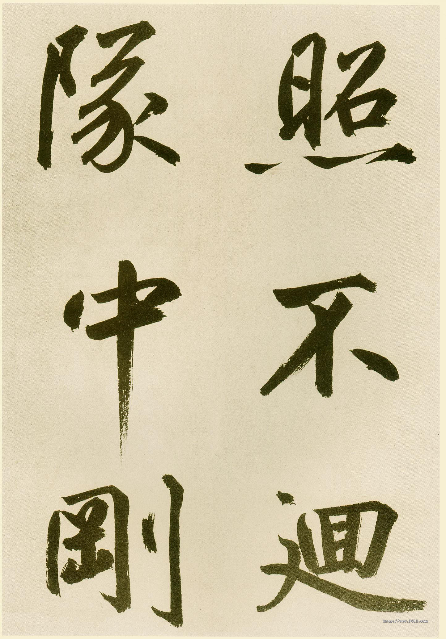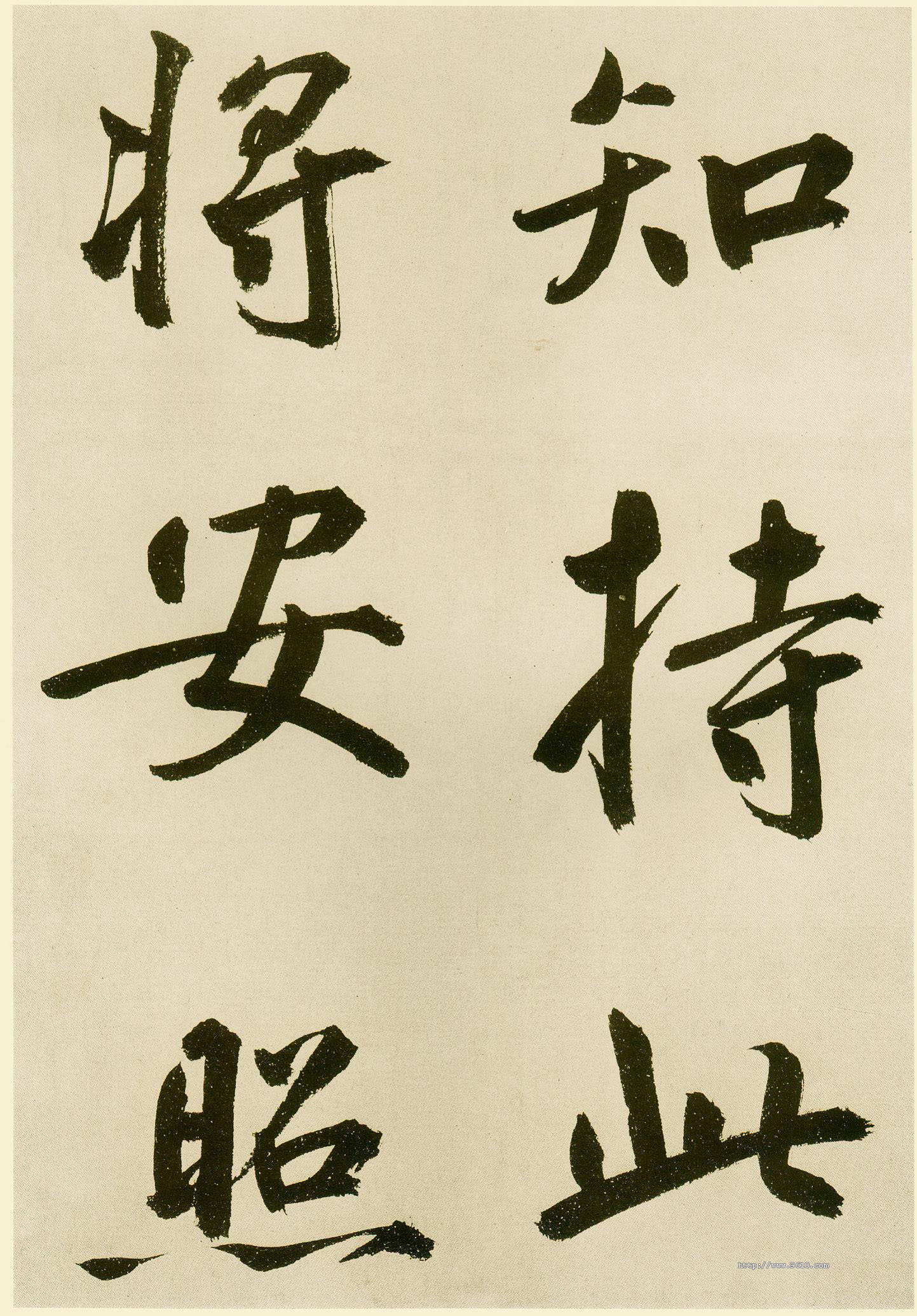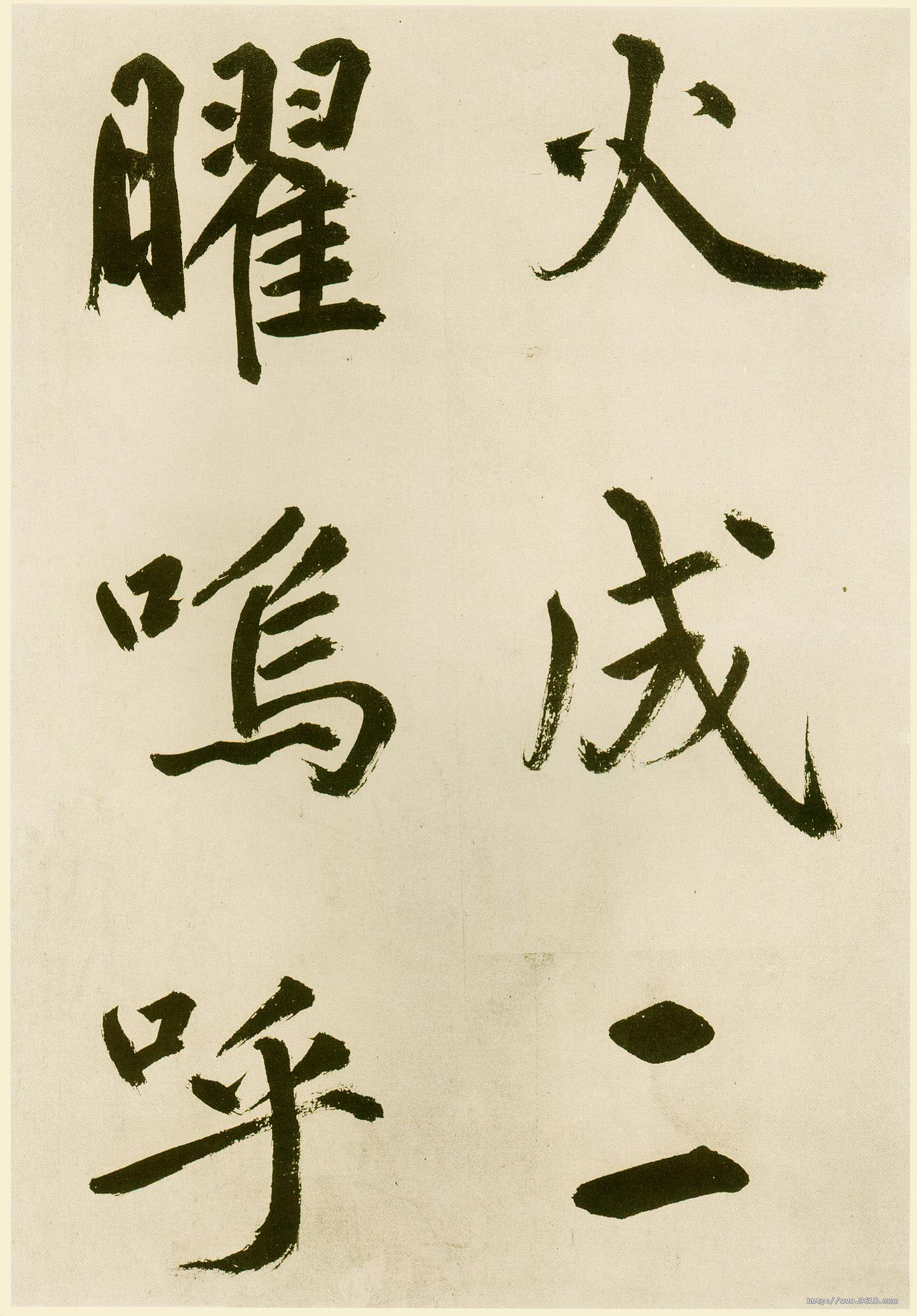 他似乎不经意于每一笔画的精美,而着力于每个字的整体气势与形象的创造。苏轼曾说过:“大字难于结密而无间,小字难于宽绰而有余。”此幅大字称得上“结密无间”,而且越往后写的越好,运笔着墨均达到完美的程度。总体看,此幅大字体势规整,气势恢弘,是鲜于氏大楷书的典型之作。