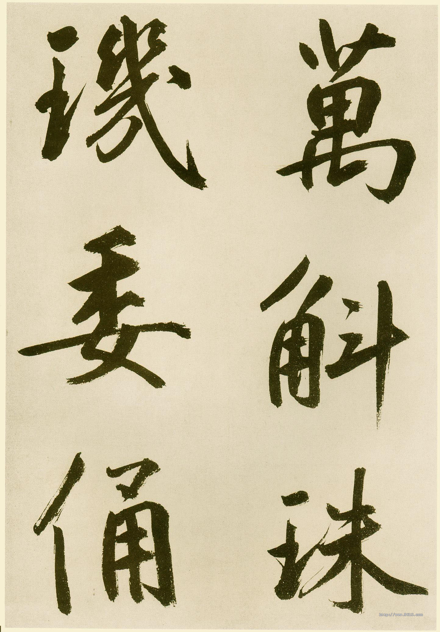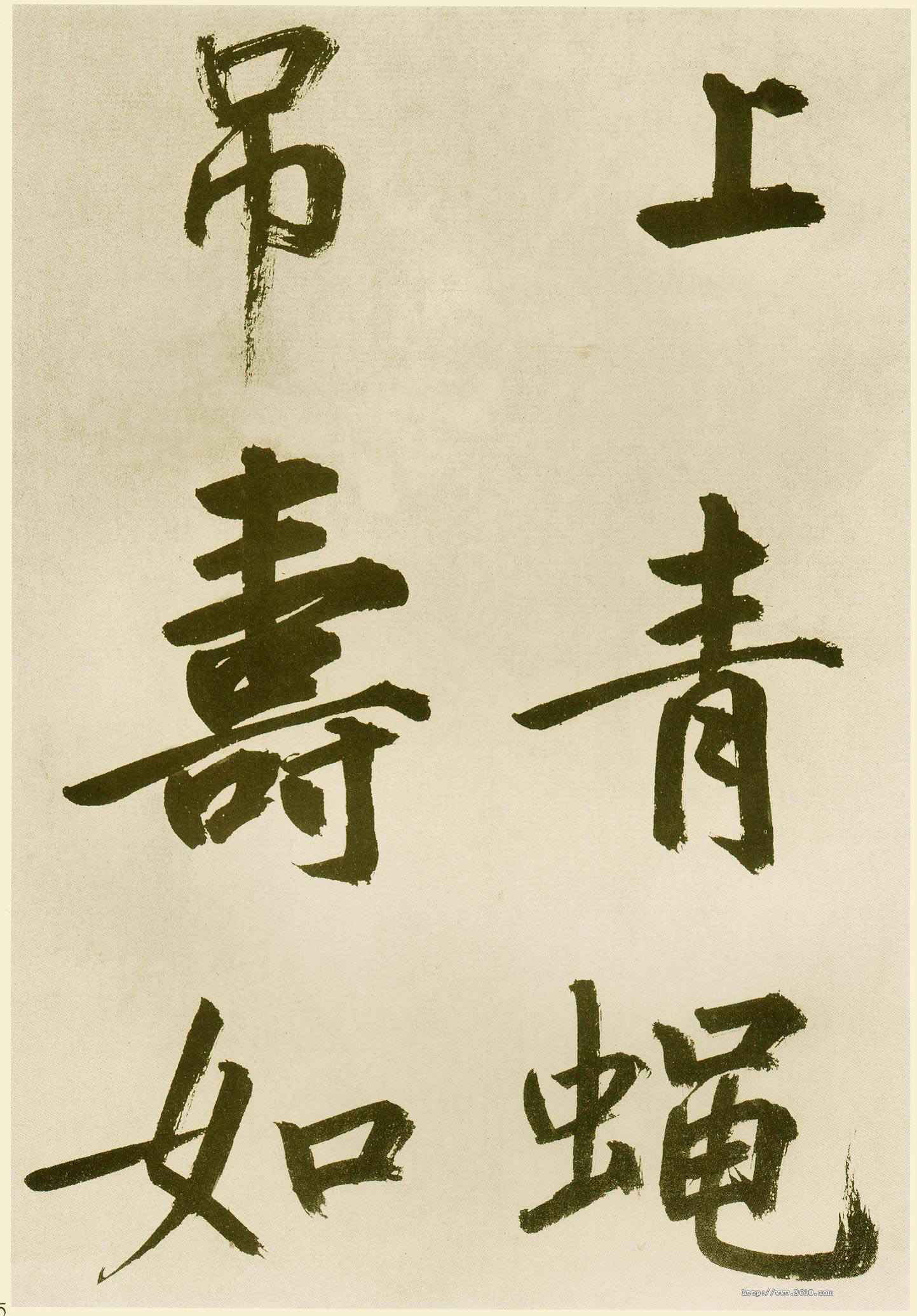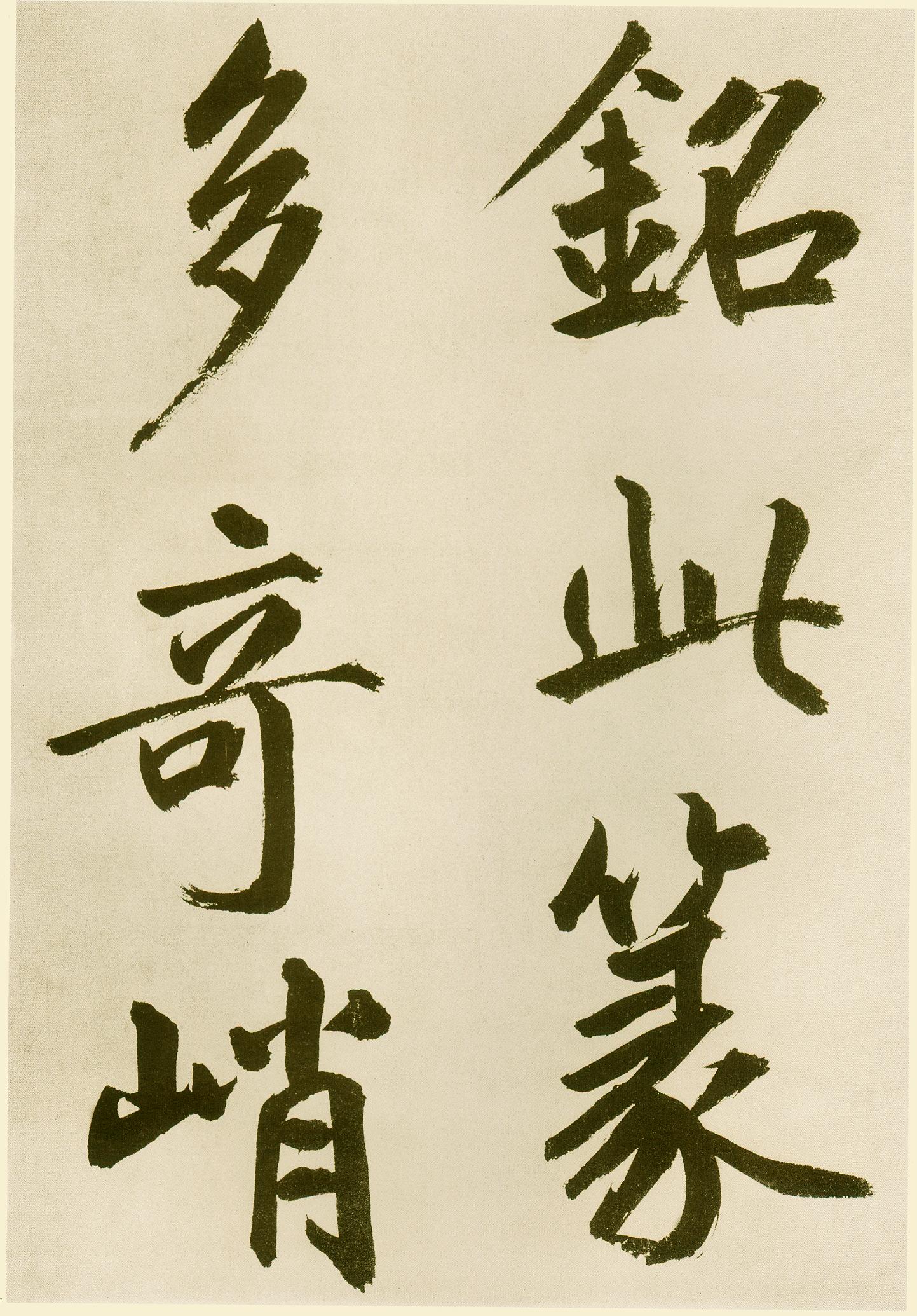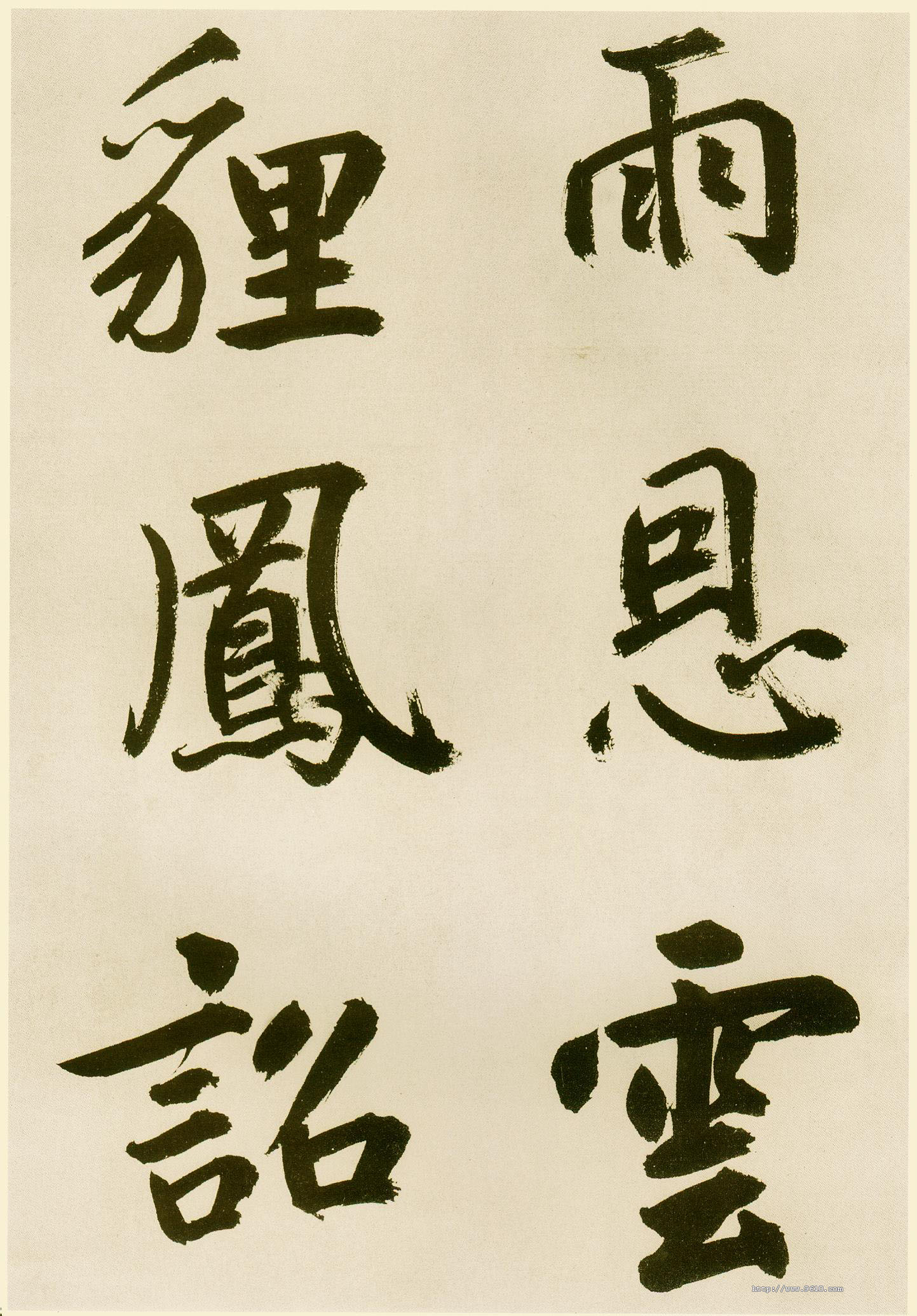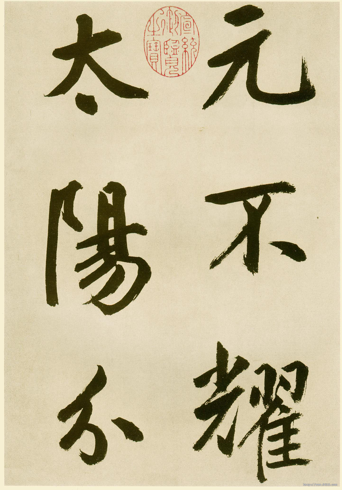 他似乎不经意于每一笔画的精美,而着力于每个字的整体气势与形象的创造。苏轼曾说过:“大字难于结密而无间,小字难于宽绰而有余。”此幅大字称得上“结密无间”,而且越往后写的越好,运笔着墨均达到完美的程度。总体看,此幅大字体势规整,气势恢弘,是鲜于氏大楷书的典型之作。