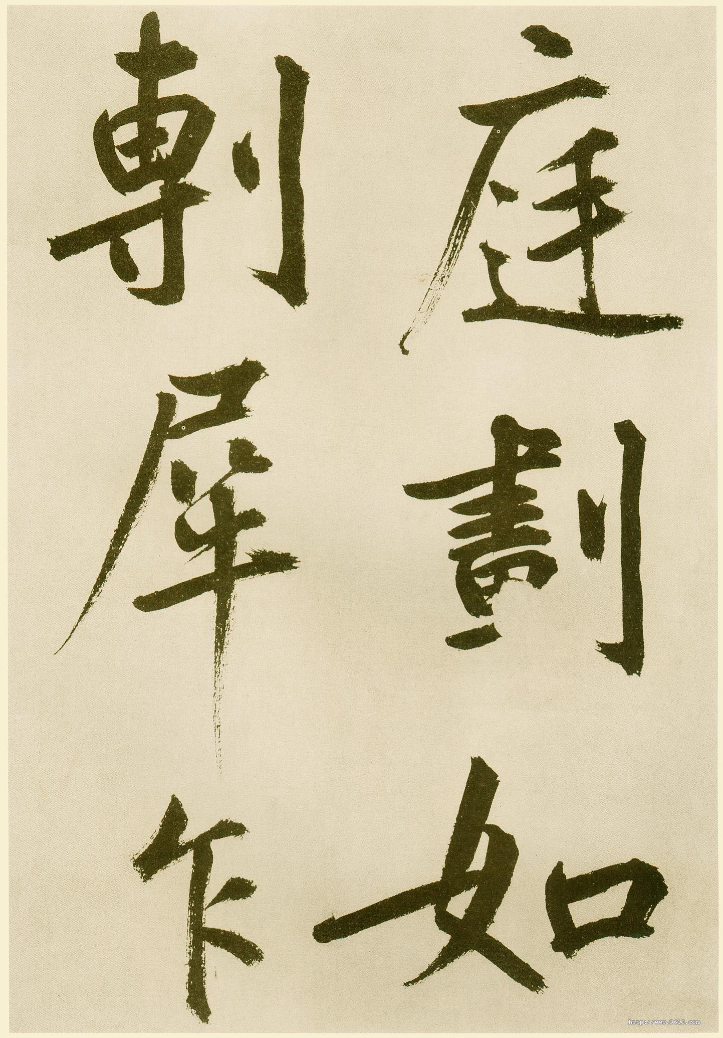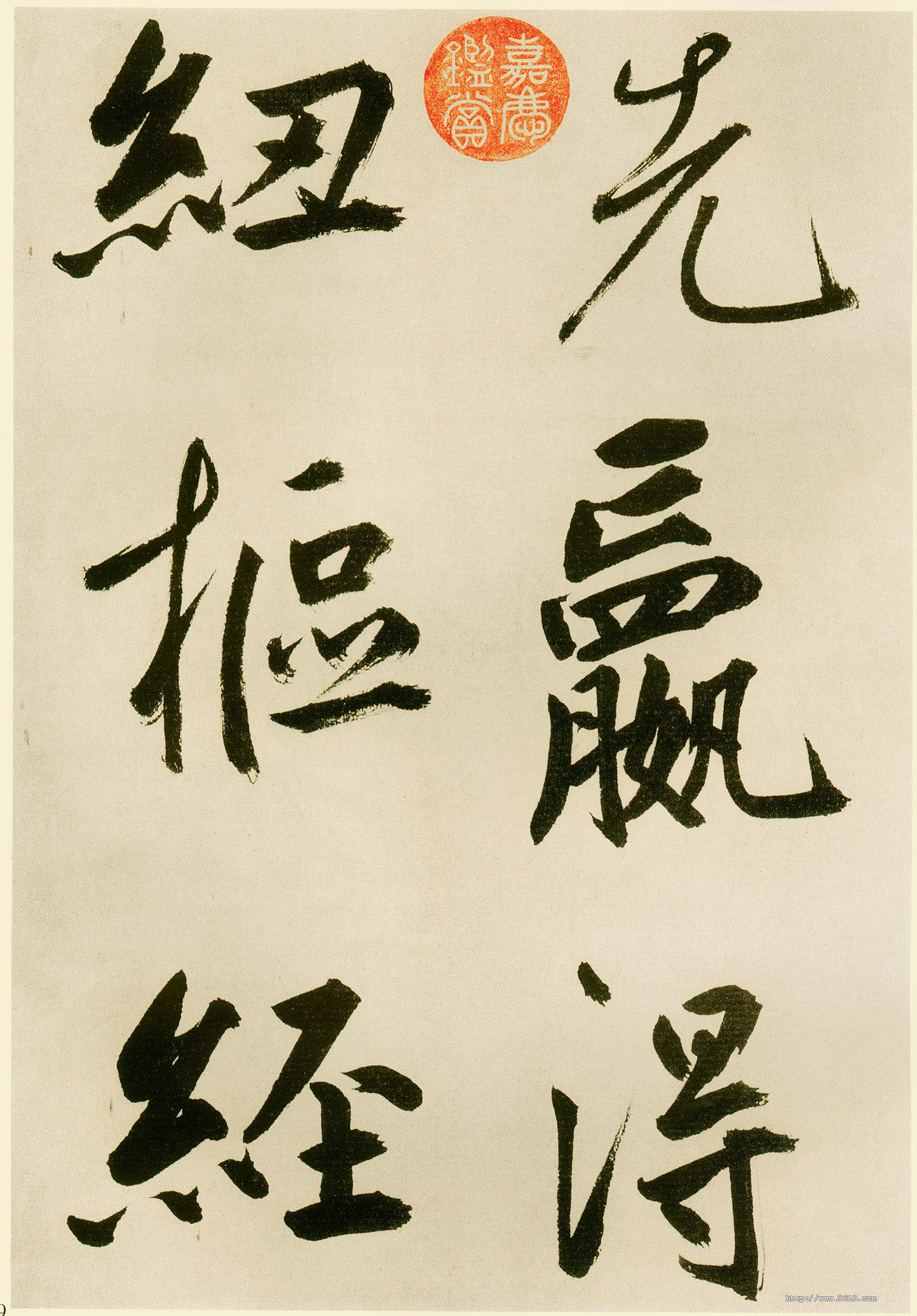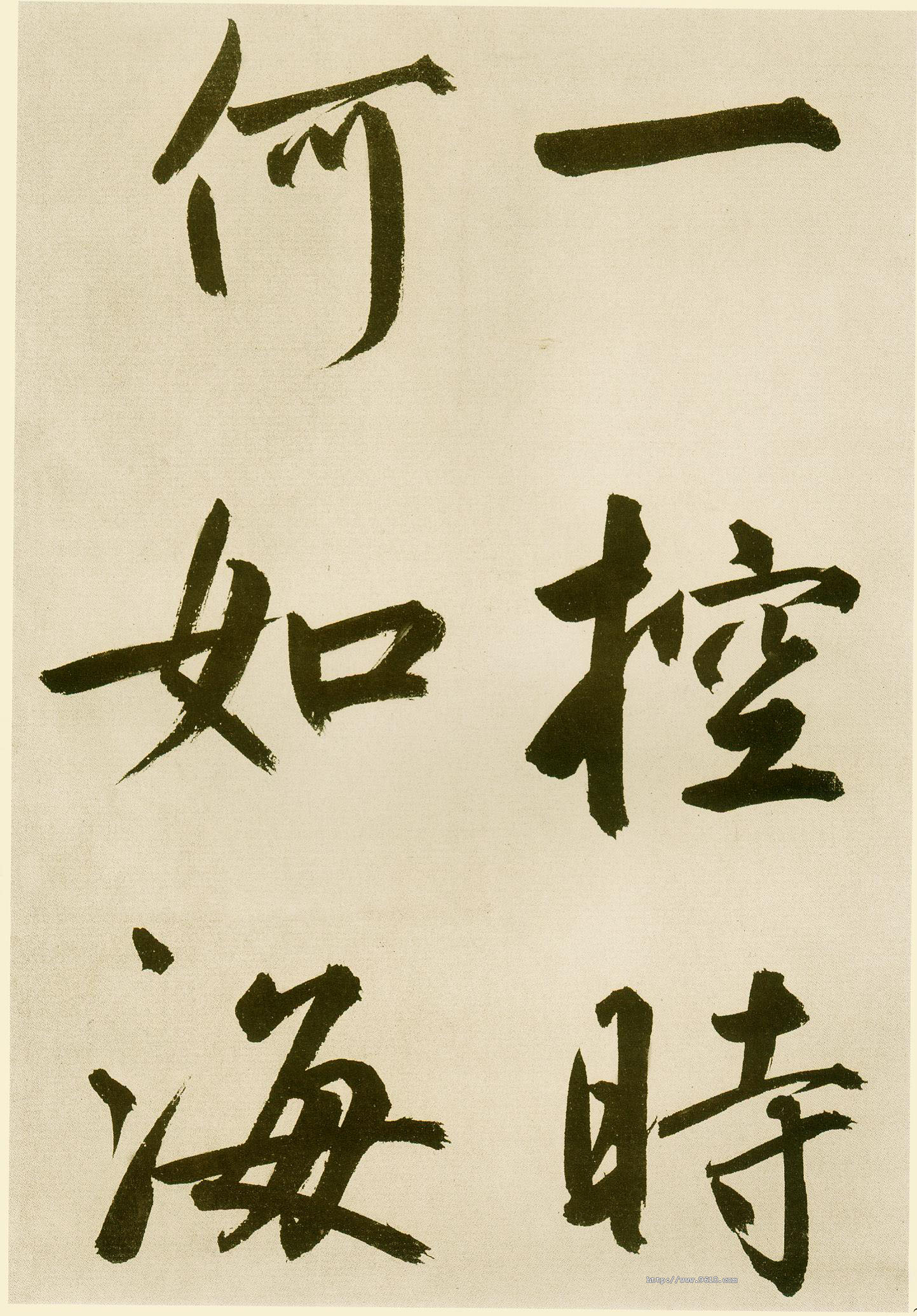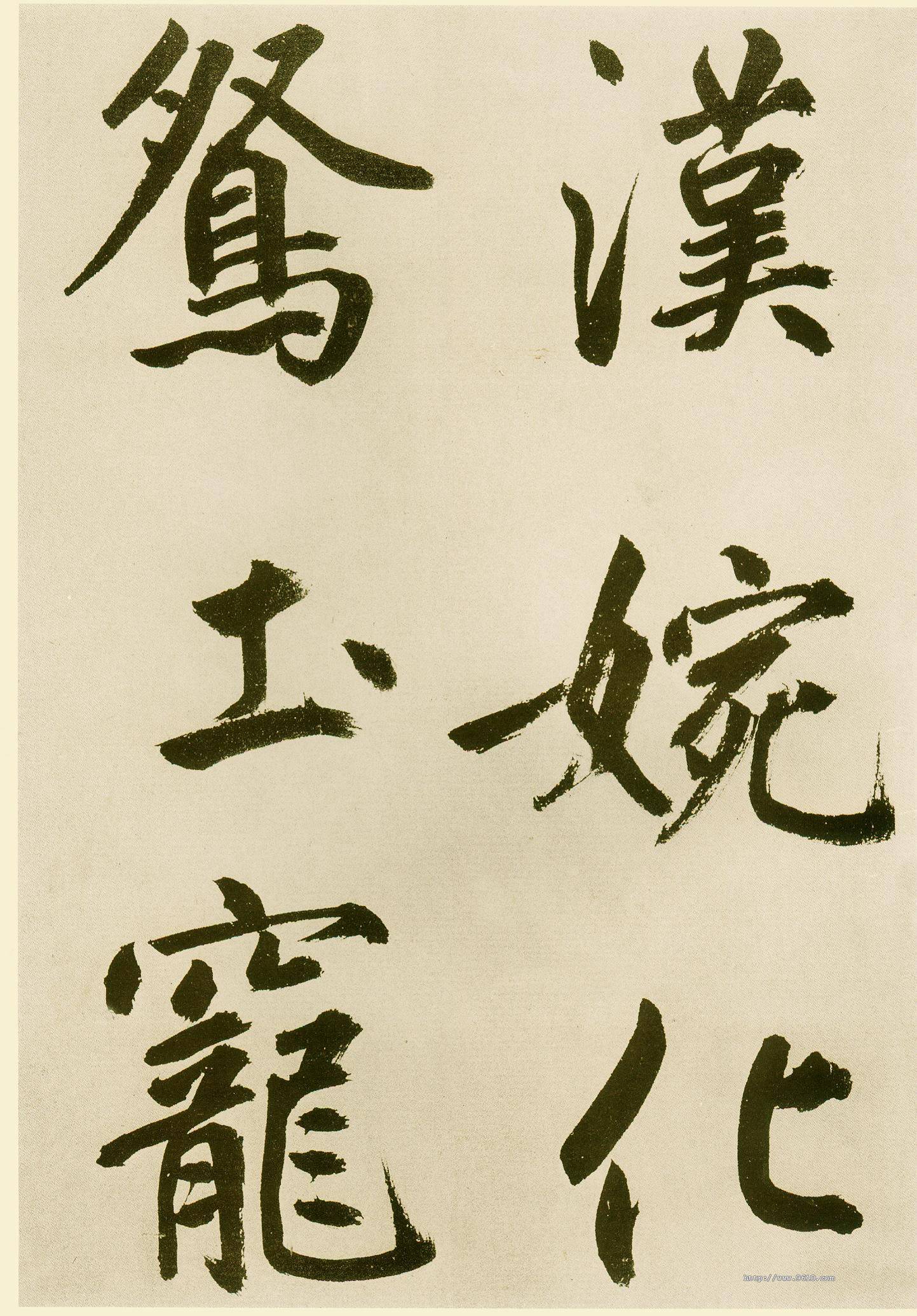 他似乎不经意于每一笔画的精美,而着力于每个字的整体气势与形象的创造。苏轼曾说过:“大字难于结密而无间,小字难于宽绰而有余。”此幅大字称得上“结密无间”,而且越往后写的越好,运笔着墨均达到完美的程度。总体看,此幅大字体势规整,气势恢弘,是鲜于氏大楷书的典型之作。