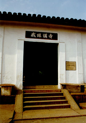 他将住房改建成“戒珠寺”,表示以失落明珠的事件为教训,对朋友应以赤诚相待,不能轻易怀疑人家,使人家蒙受不白之冤。后王羲之西归,其子遵乃父遗命,将尸体涂以火漆,继续尽其职守,奈火漆难以防腐,后遂以塑像代之,故与他寺独特。而寺起名为“戒珠”,一是取《法华经·序品》中“精进持净戒,犹如获明珠”之禅意,二是阐明舍宅之本意。