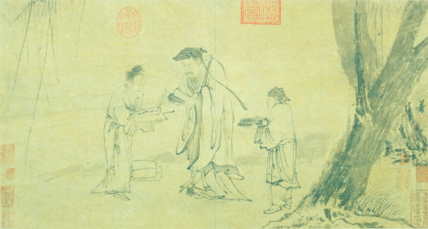 “题扇赠老姥”事,《晋书.王羲之传》本传载:“又尝在蕺山见一老姥,持六角竹扇卖之。羲之书其扇头各为五字。姥初有愠色。因谓姥曰:‘但言是王右军书,以求百钱邪。’姥如其言,人竞买之。”