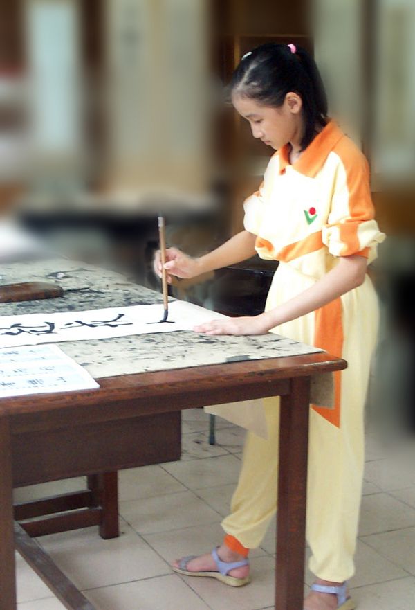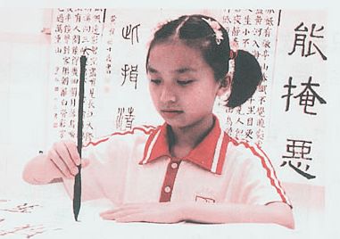 2.身直 要做到以上要求,身子就要尽量坐正、坐直。胸口离桌沿的距离约在3寸左右(根据所写字的大小适当调节距离的远近)。不可紧贴桌面或弯腰驼背;