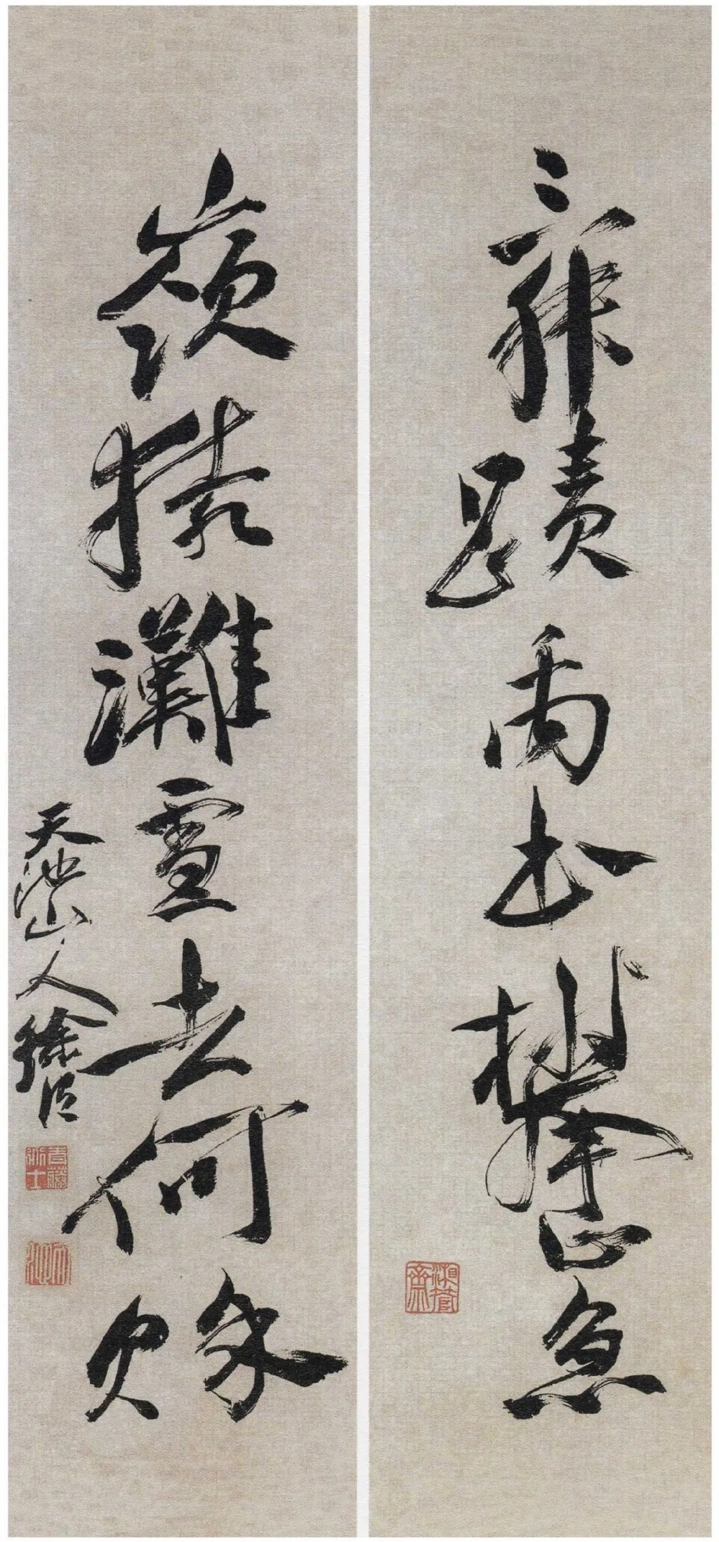 徐渭《草书“舜迹岭猿”七言联》 上海博物馆藏