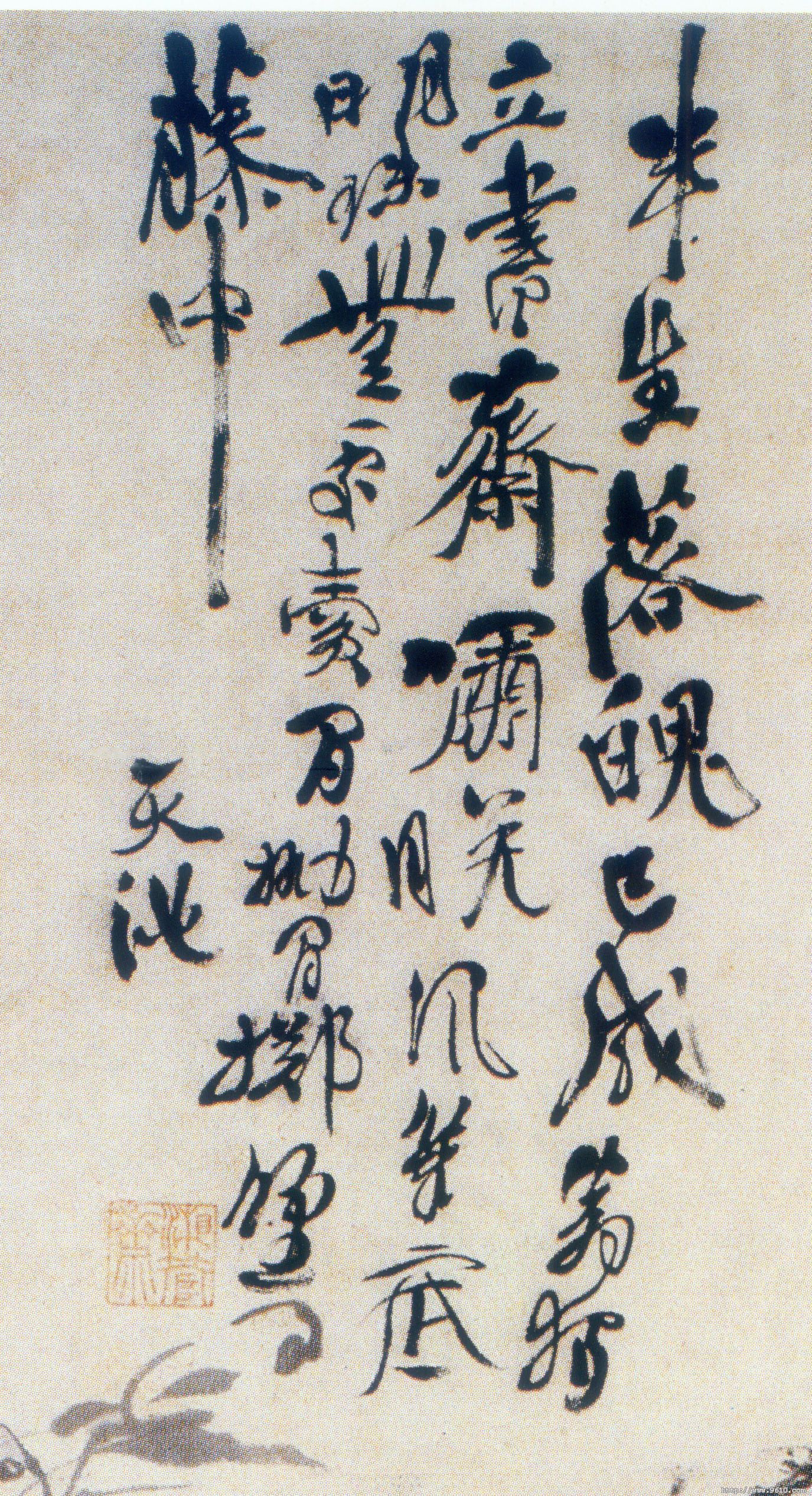 此诗常见,见於《徐文长三集.卷十一》中,借物咏志,抒发了作者自比“璞中美玉”、“画里明珠”而一生不遇,坎坷痛苦的心境。画中题字受米芾行书风格影响,结体紧凑,运笔舒缓大气,竖笔、捺笔流畅雄健,收锋沉稳,体现出徐渭作為晚明一大书家的功力。此作曾经清代李佐贤、陈希濂等收藏。(楊丹霞)