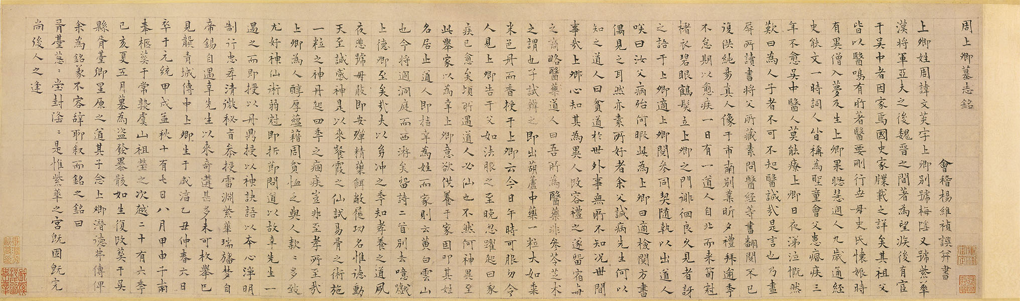 杨维祯《 周上卿墓志铭》 纸本,纵25.9厘米,横86.2厘米。 辽宁省博物馆藏