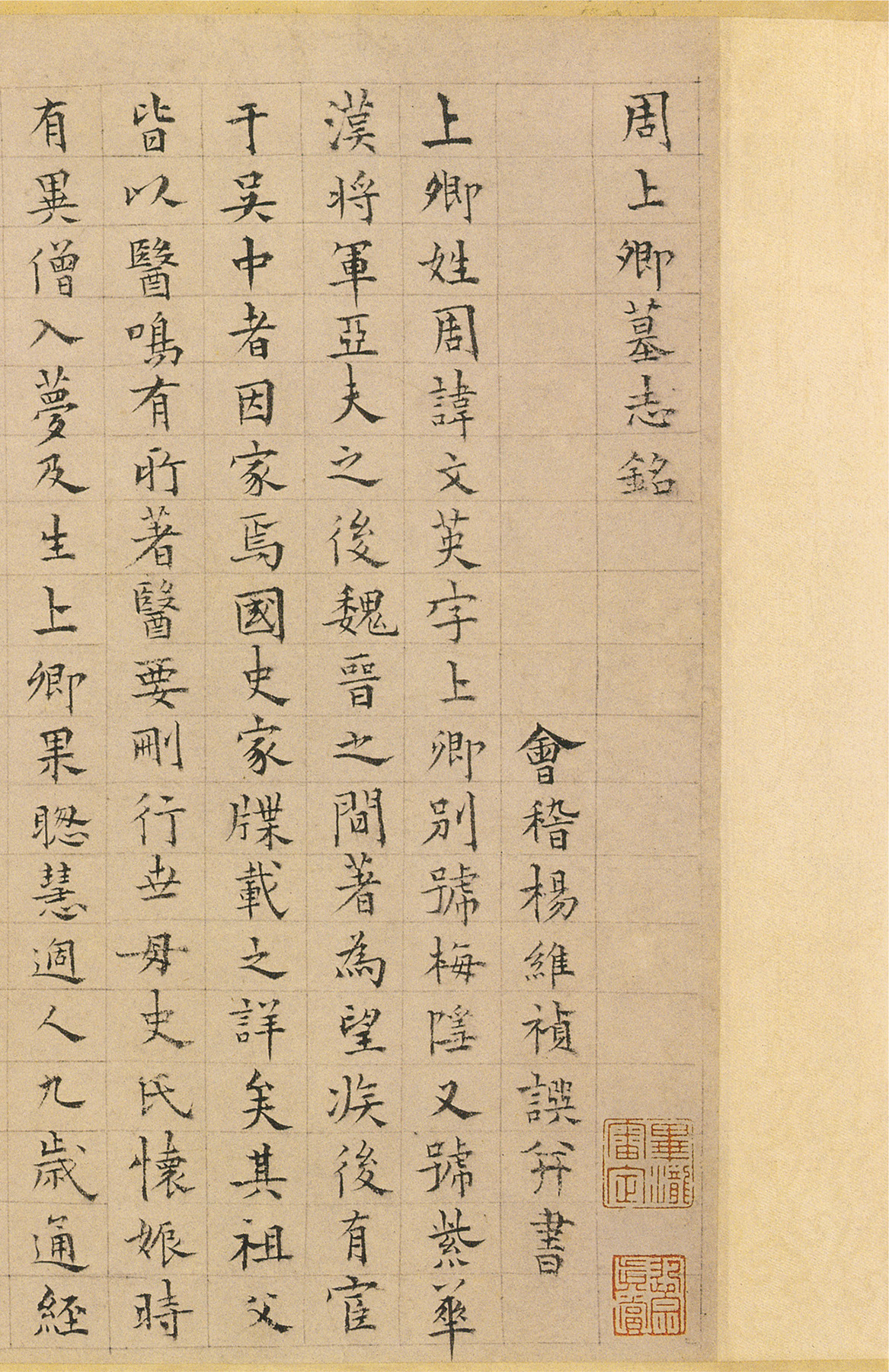 辽宁省博物馆收藏的杨维祯所书《周上卿墓志铭册》,为流传至今的唯一杨氏小楷书法之作,从著录情况看,杨氏楷书之作历来罕见,因此这件墨迹就显得弥足珍贵。