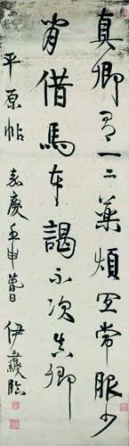 款识:真卿有一二药,烦宜常服,少闲借马车,谒不次真卿,平原帖,嘉庆壬申春日,伊秉绶临。 印鉴:墨卿(朱)、伊秉绶印(朱)、延年(朱)