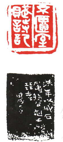 大厂印款亦极别致,阴刻单刀款逸笔草草,颇近六朝砖文,阳刻造像,古拙天真,皆有情趣。