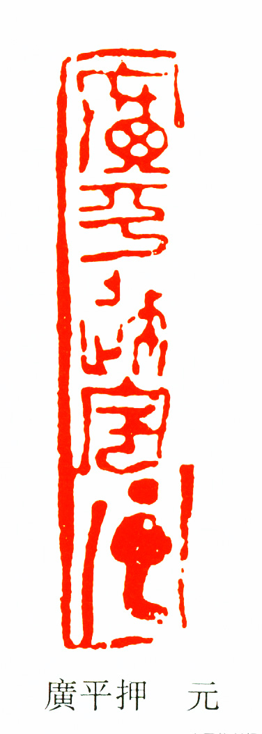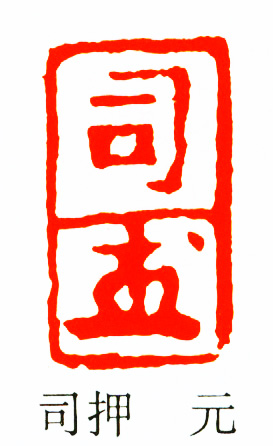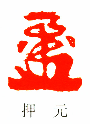 花押印,皆为朱文,形状多种多样。从传世的元朝押印来看,大体上是长方形的,有的仅一汉字,有的仅刻花押,有的上刻姓氏,下部兼刻花押。这上部的文字无论用楷书、隶书甚至篆书,都有一种古拙凝重的风格,是后世创作今体字印章不可多得的参考资料。