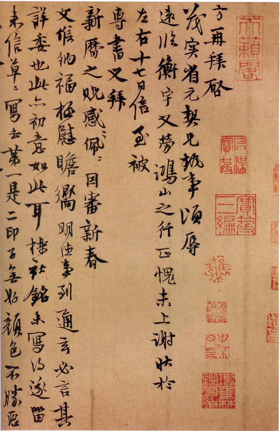 释文:方再拜啟。茂實省元契兄執事。頃辱遠臨衡宇。又勞鴻山之行。正愧未上謝狀於左右。十七日信至。被專書。又拜新歷之貺。感佩感佩。因審新春文候納福。極慰瞻嚮。明德事到通玄。必言其詳委也。此亦初意如此耳。櫟社銘未寫得。遂留來信草草寫去。第一是二印子無好顏色。不勝惡甚。漫爾奉上。以塞來命。新年來不審靜虛起居何似。方亦欲披承以傾間懷。未可去耳。幸為道意。若從者入吳興。千萬過涇上。對床一宿而去。絕佳。恐來信歸晚。奉狀極怱怱非禮。伏惟恕察。十七日。方再拜啟。