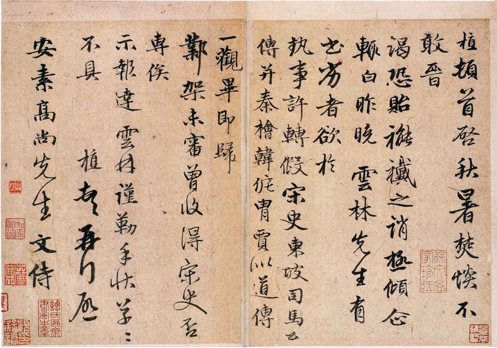 释文:植顿首启。秋暑焚惔,不敢晋谒,恐贻褦襶之诮。极倾企,辄白,昨晚雲林先生有书:“劣者欲于执事许转假《宋史》东坡、司马公传并秦桧、韩侂胄、贾似道传一观,毕即归邺架。未审曾收得《宋史》否?专俟示报达,雲林谨勒手状。”草草不具。植顿首再拜启。安素高尚先生文侍。