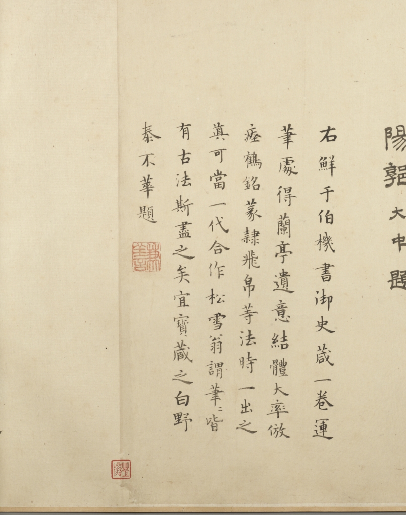 泰不华《鲜于枢御史箴题跋》纸本小楷,高50.1cm。美国普林斯顿大学艺术博物馆藏 (John B. Elliott寄赠)。