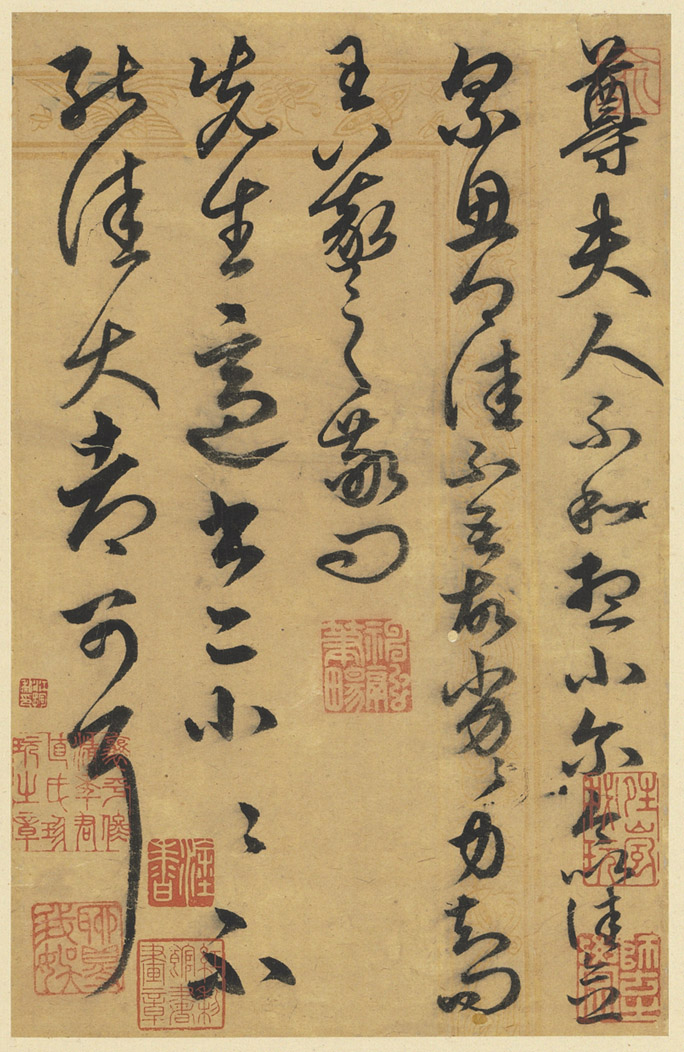 释文:尊夫人不和想小尔。今以佳。念累思。卿佳不。吾故劣劣力知问。王义之敬问。先生适书亦小小不能佳。大都可耳。 钤印:俞