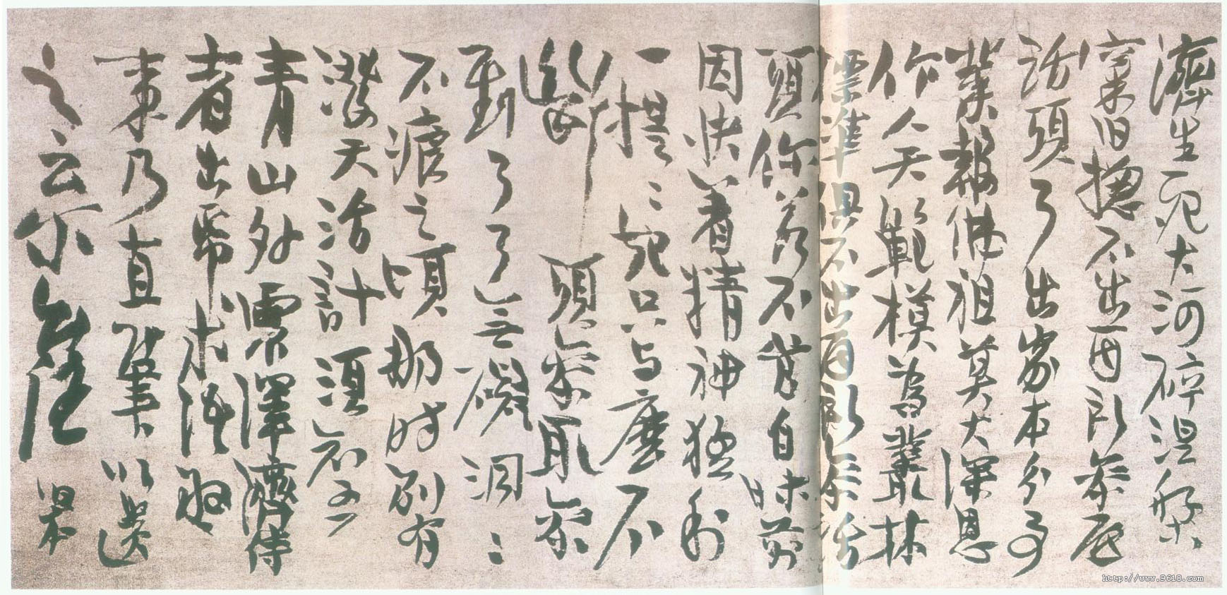 其书法不拘一格,元代中叶书家与之皆有交游,他是赵孟頫夫妇的佛门师傅,交往甚密,然中峰明本的书法却毫无赵书之姿,大多用笔随意,粗头烂服,有所谓“柳叶书”之誉,大概其笔画如柳叶,抑或如柳叶飞舞,观其作品,字形大小错落,别有一番和谐。