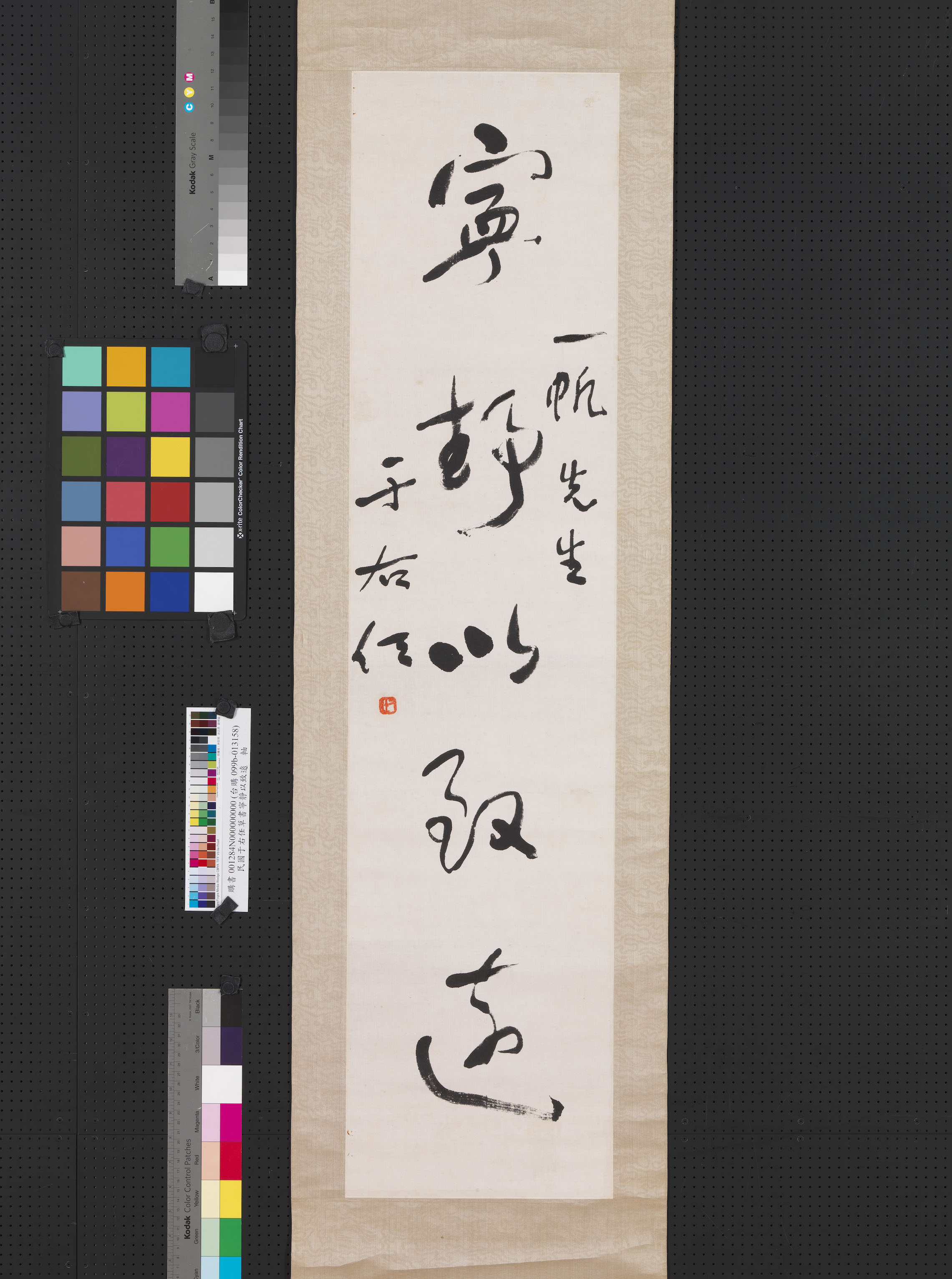 释文:寧靜以致遠。 款署:一帆先生。于右任。 钤印:右任(朱文) 著录:自然生姿态-于右任书法特展,页250、318