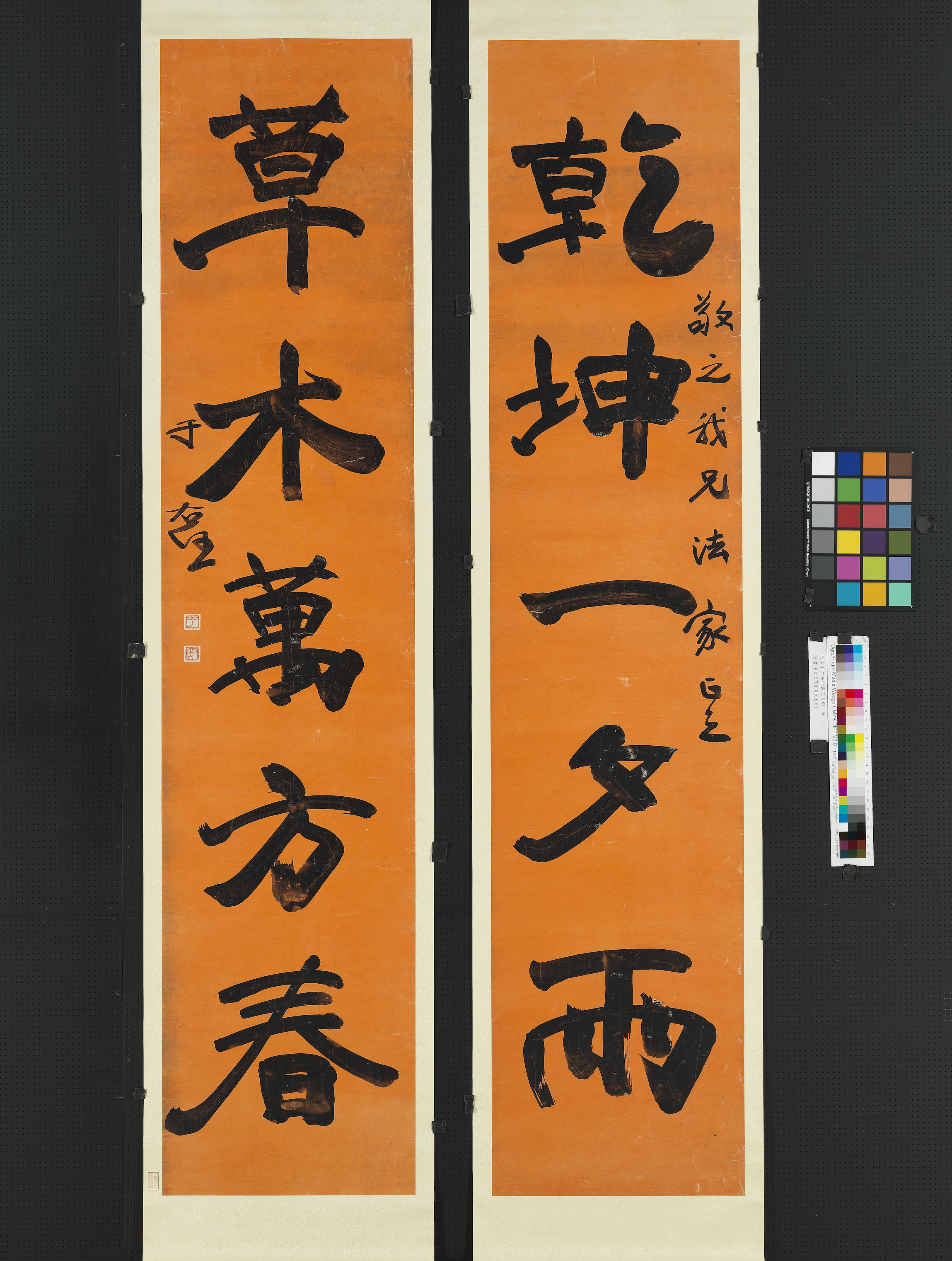 于右任《行书乾坤草木五言联》蜡笺本行书 206.2×45.1cm 台北故宫博物院藏