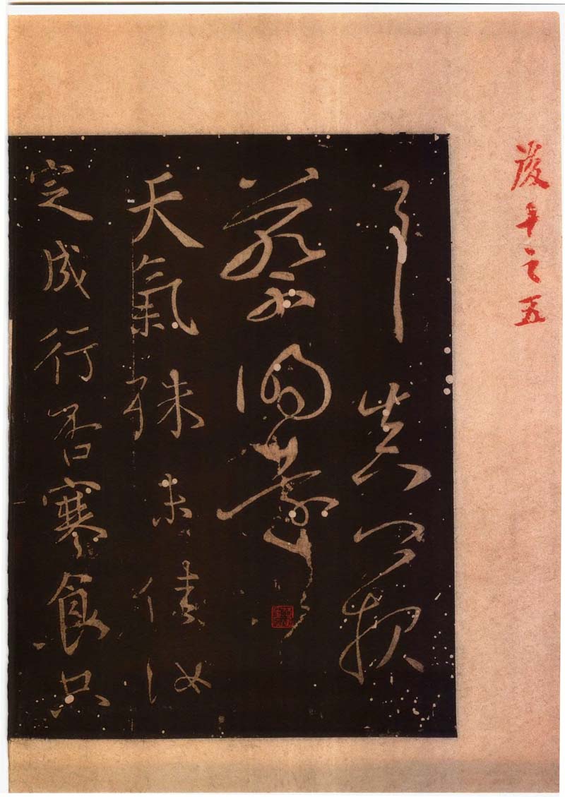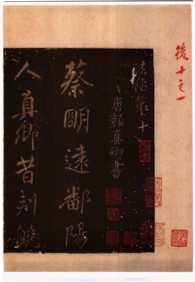 这里我还附带谈一件事:颜真卿又有《裴将军诗帖》,参合真行草书为之,章法离奇,论者或极口称道,或斥为伪作,个人认為颜真卿此书胎息於《曹植庙睥》、智果《评书帖》,纵横驰骤,奇正相生,这一境界,非颜真卿大力,谁办得到?今天连带谈及,因见颜真卿《裴将军诗》的章法,在《蔡明远》、《刘太冲》两帖中已见端倪。有蔡、刘两帖,对於探索《裴帖》的可信性有所裨益。《忠义堂帖》也收入《裴帖》,此帖西泠印社现巳印行,故不復收。附带一说,愿与当世学者共论定之。
