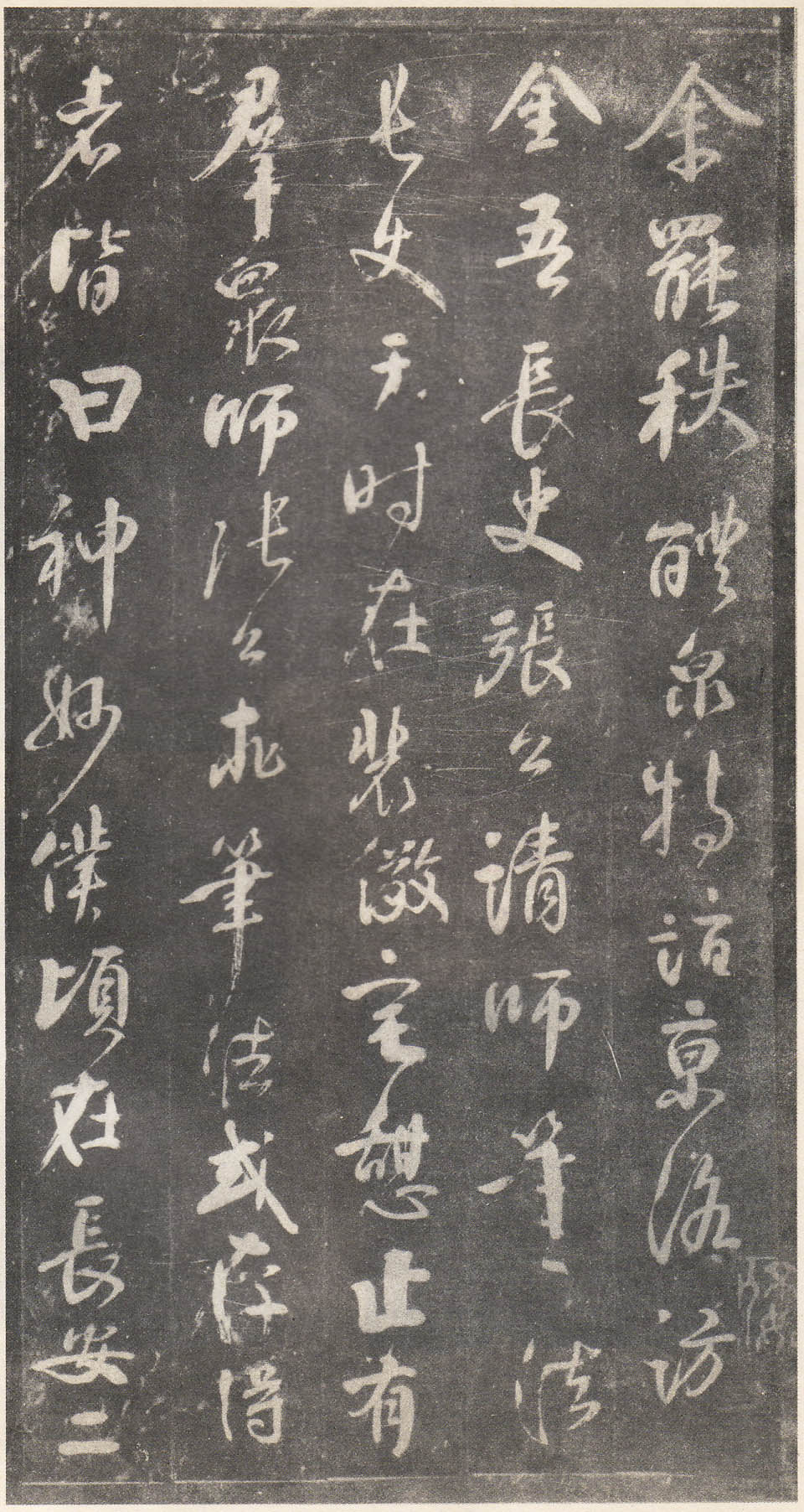 予罢秩醴泉,特诣东洛,访金吾长史张公旭,请师笔法。长史于时在裴儆宅憩止,己一年矣。众有师张公求笔法,或有得者,皆曰神妙,仆顷在长安师事张公,竟不蒙传授,使知是道也。人或问笔法者,张公皆大笑,而对之便草书,或三纸,或五纸,皆乘兴而散,竟不复有得其言者。予自再游洛丁,相见眷然不替。仆问裴儆:“足下师敬长史,有何所得?"曰:“但得书绢素屏数本。亦偿论请笔法,惟言倍加工学临写,书法当自悟耳。”