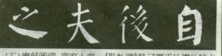 (四)集众之长,自成一格。颜真卿除了受过张旭和徐浩的传授外,还接受了褚遂良、王羲之以及篆书和魏碑的笔意。如“蚕头燕尾”不仅活用在捺法上,而且横画上也有体现,如图四“之”、“夫”、“后”、“自”字等,乍看是机到笔随,仔细观之即不难看出,颜字并非完全是他的独创,而是受到了众多书家的影响,他的好学由此可见一斑。他的字虽与众不同,但“反乎常而合乎道”,更加富有审美情趣。