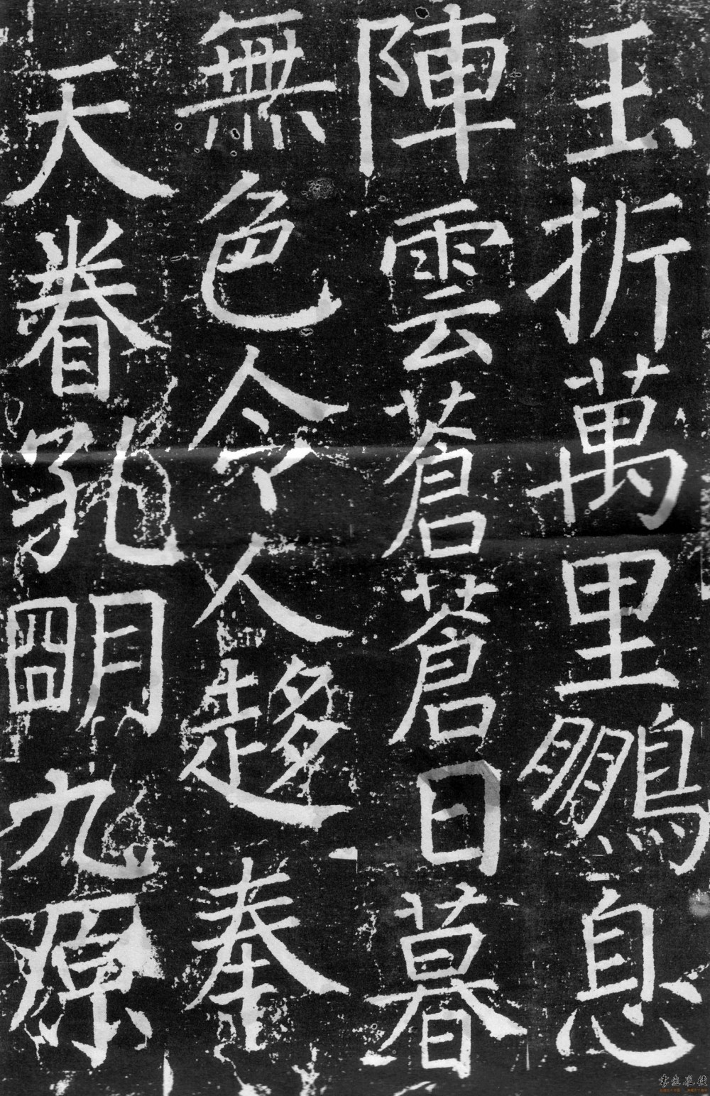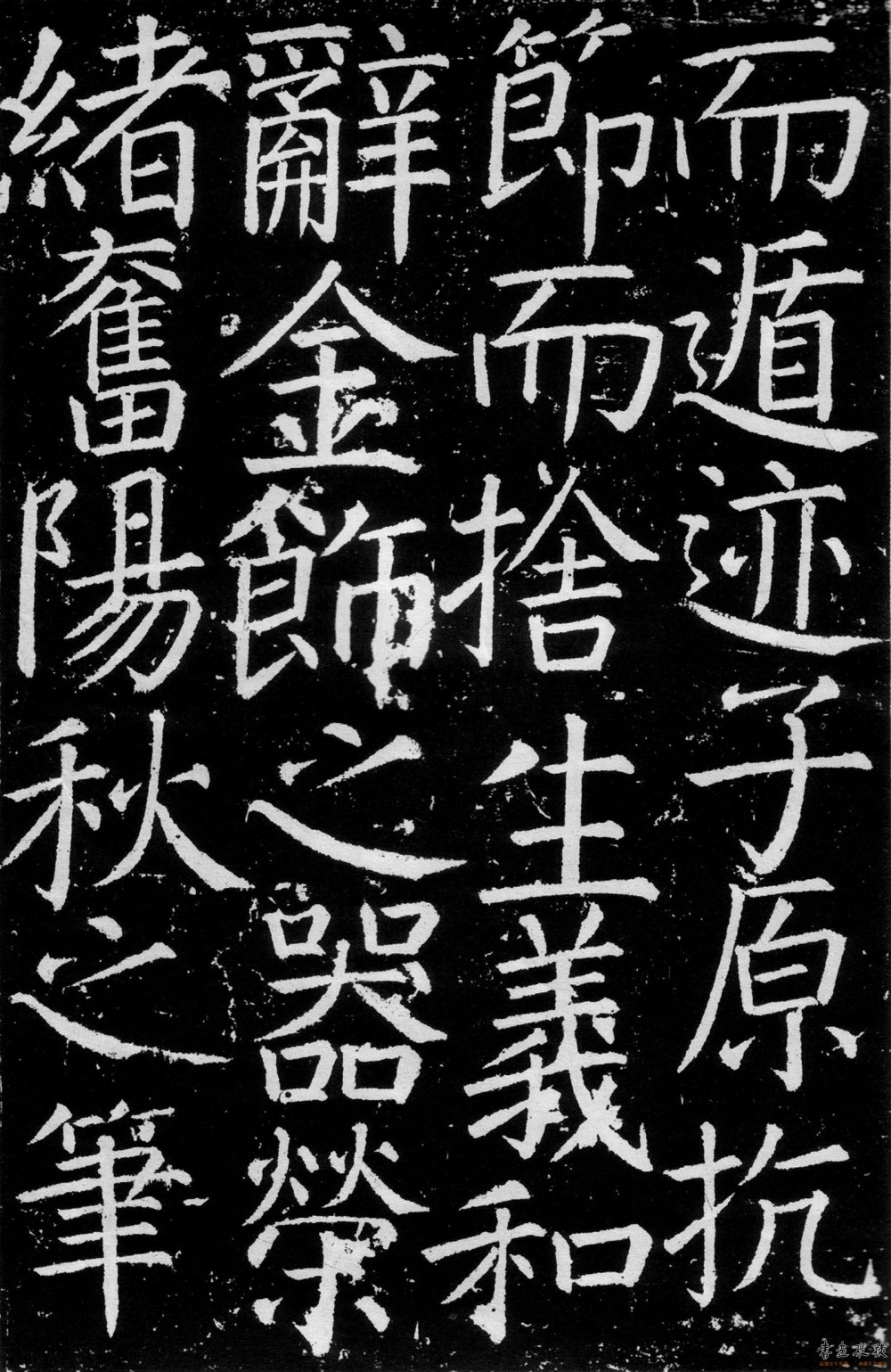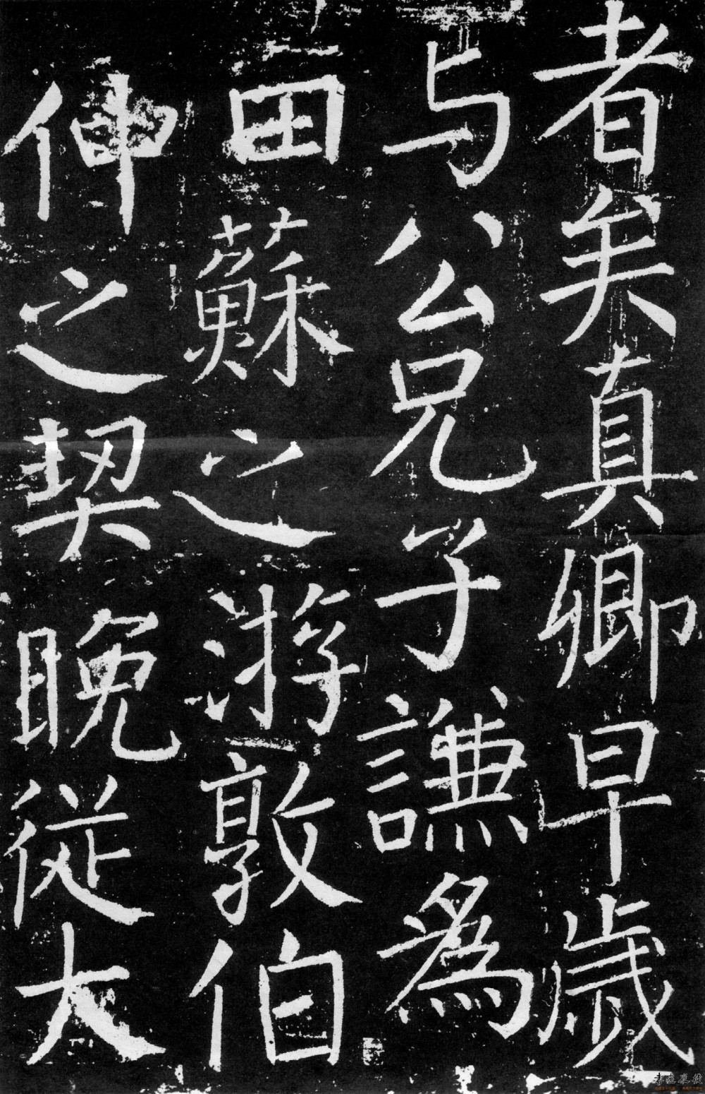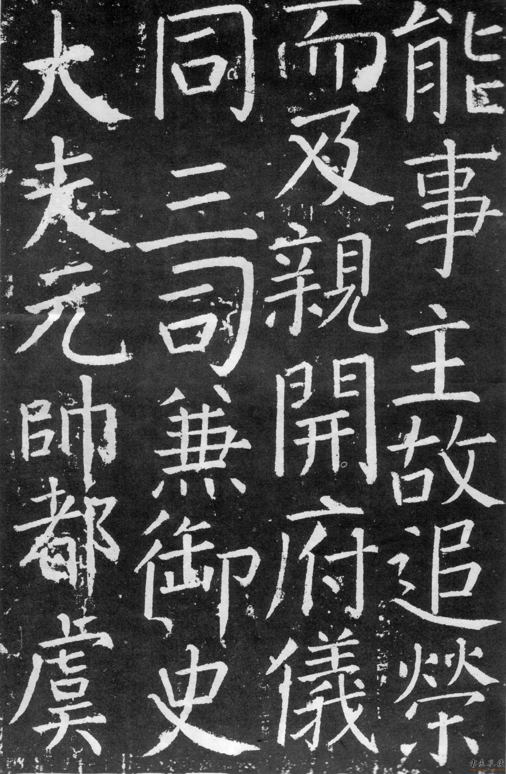 此碑骨骼略瘦于《颜家庙》等碑,结体较疏缓,风神开张雄强。或认为柳公权学颜由此入手。北京故宫博物院藏明晚期拓本。此碑据明都穆《金薤琳琅》说:“颜公此刻人间少传。”可见,此碑拓本明时就已少见。明拓本“李秀岩”三字后的二字残损,经考察为“补勒”。明晚拓本“有马千驷” 之“马”字,“勋劳”之“勋”字,“守节安卑”之“卑”字,“异于他族”之“ 于”字,皆完好。