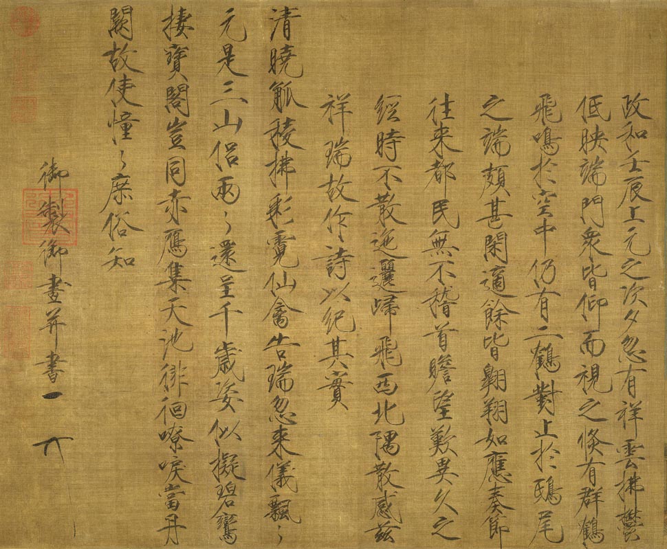 赵佶《瑞鹤图卷》绢本楷书 辽宁省博物馆藏 (图片由书友宇宙微光提供)