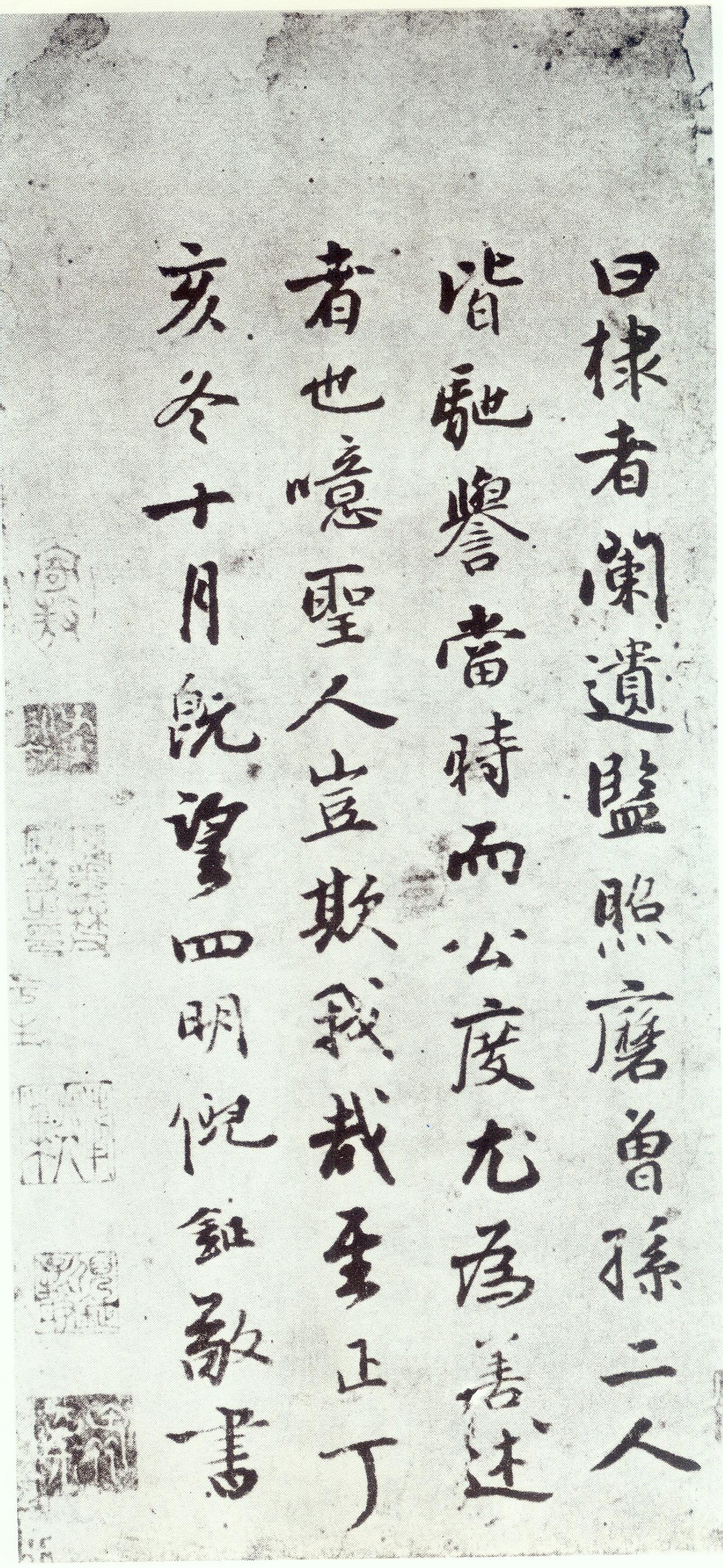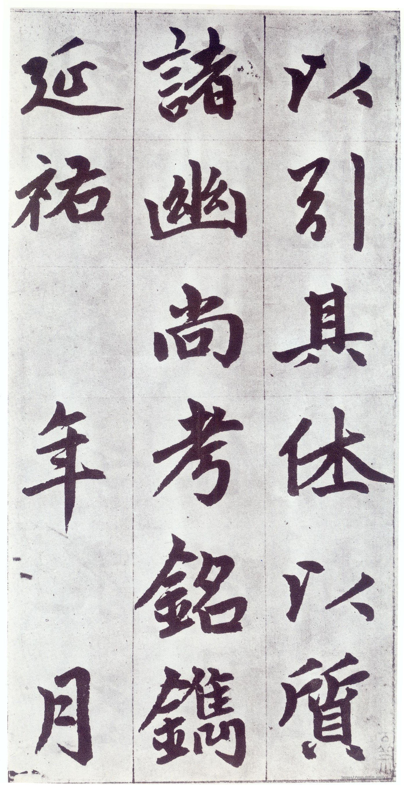 《仇锷墓碑铭》于延祐六年(公元1320年)书,是其晚年力作。运笔方整有力, 遒丽老健,一笔不苟,骨气深稳,与常见赵书妩媚甜润不同。赵孟頫的书法以楷书和行书最好。此书是他楷书代表作之一,他的楷书用笔流畅随意,但又出规入矩,法度森严,其结体疏朗俊秀,飘逸洒脱,几乎无瑕疵可言。