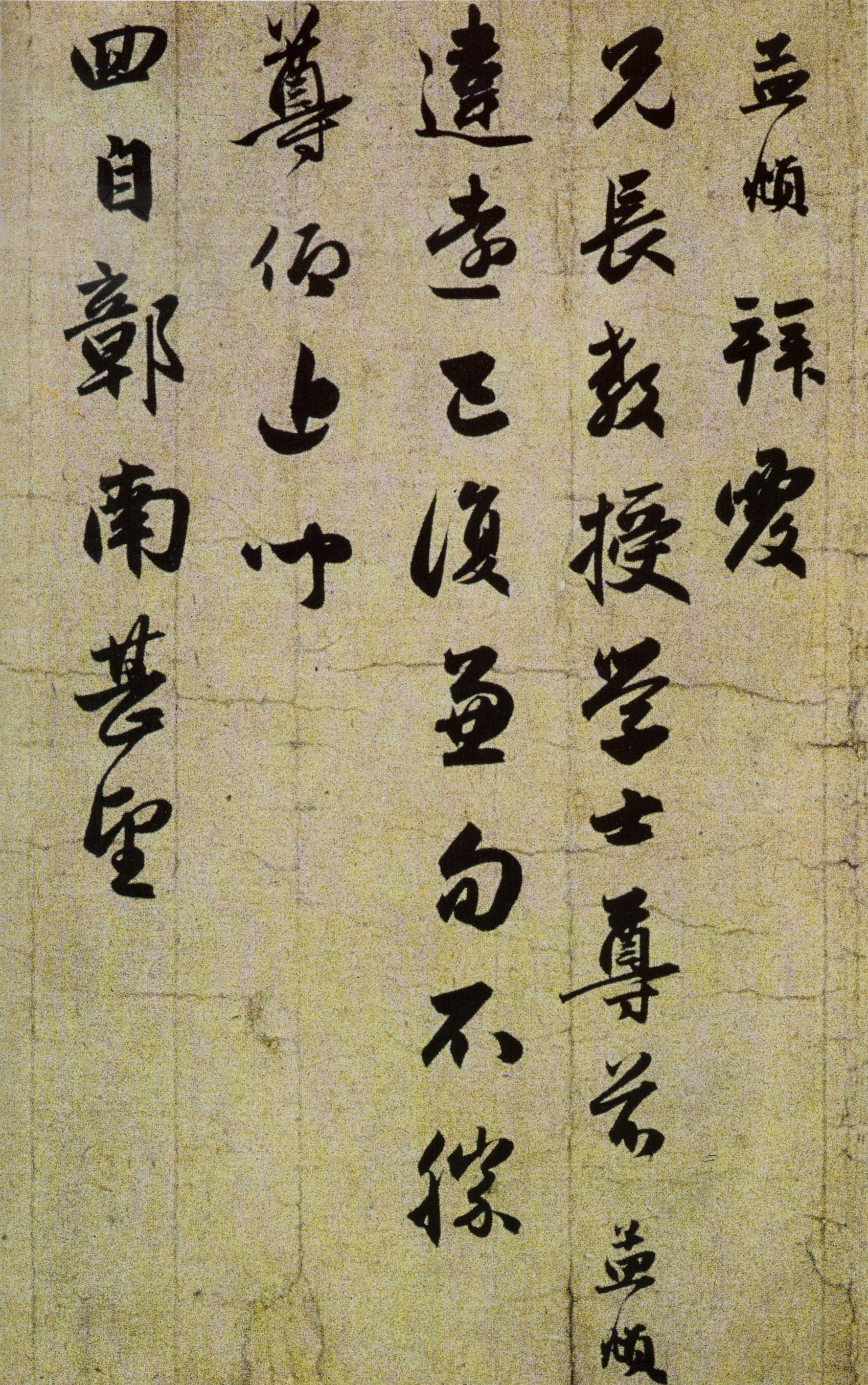 释文: 孟頫拜覆兄长教授学士尊前。孟頫违远,已復兼旬。不胜尊仰。近闻回自彰南。甚望尊旆过此一番。如蒙惠然賁临。深慰下情。因五兄便。草草拜覆。颙俟之 至。不备。十二日。孟頫拜覆。