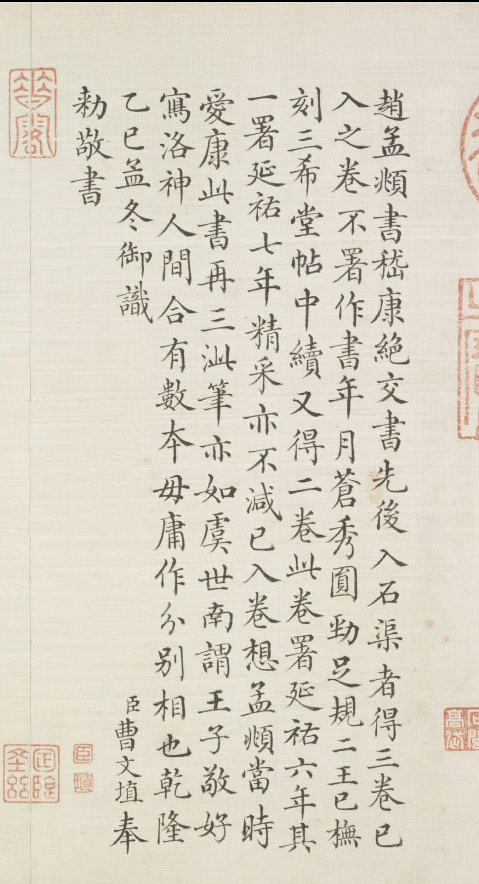 引首为明文彭隶书“松雪真迹”四字,卷后有清陈廷敬、高士奇、曹文埴、高岱题跋。