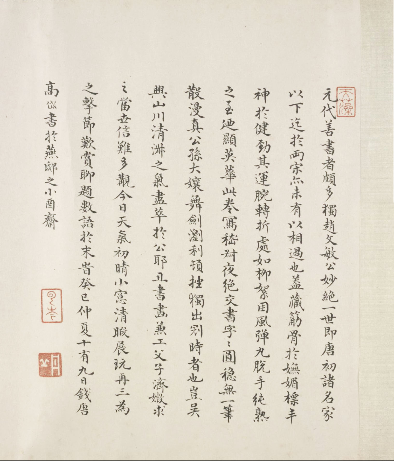 钤“赵氏子昂”朱文印,“松雪斋图书印”朱文印,“赵氏书印”朱文印,“赵”朱文印,“大雅”朱文印。