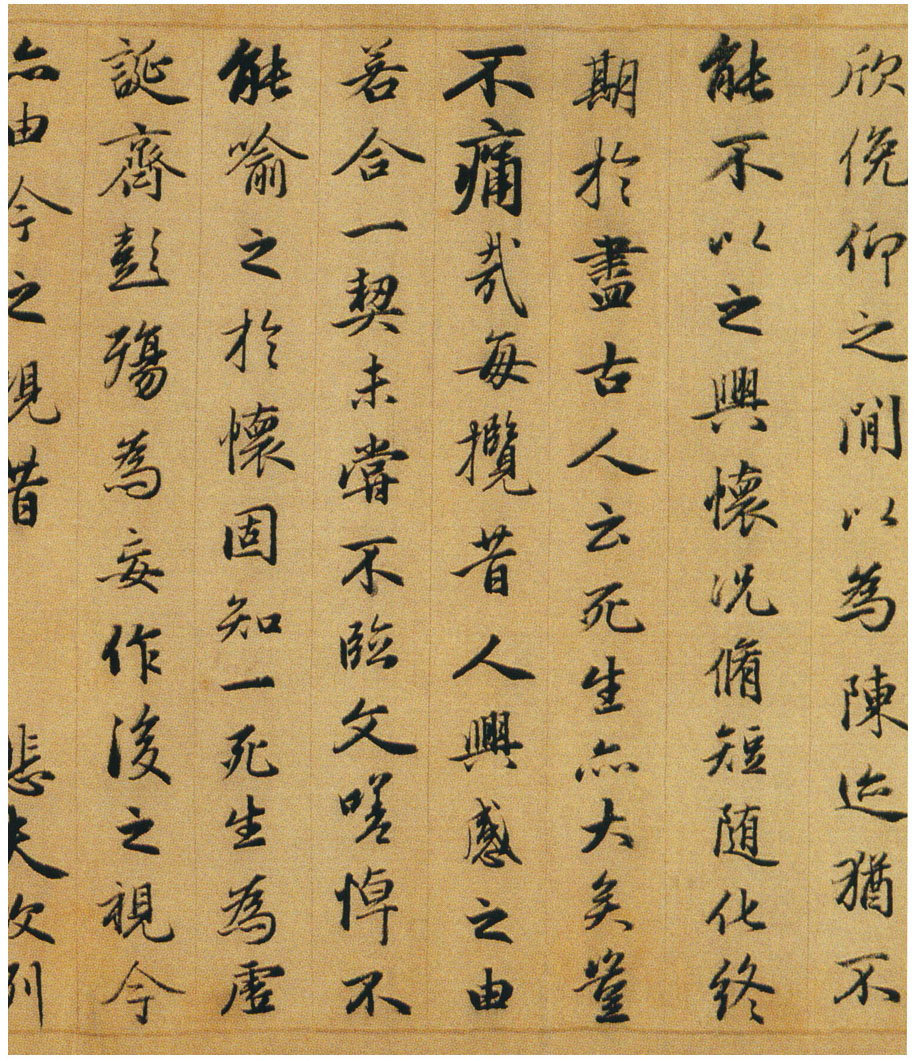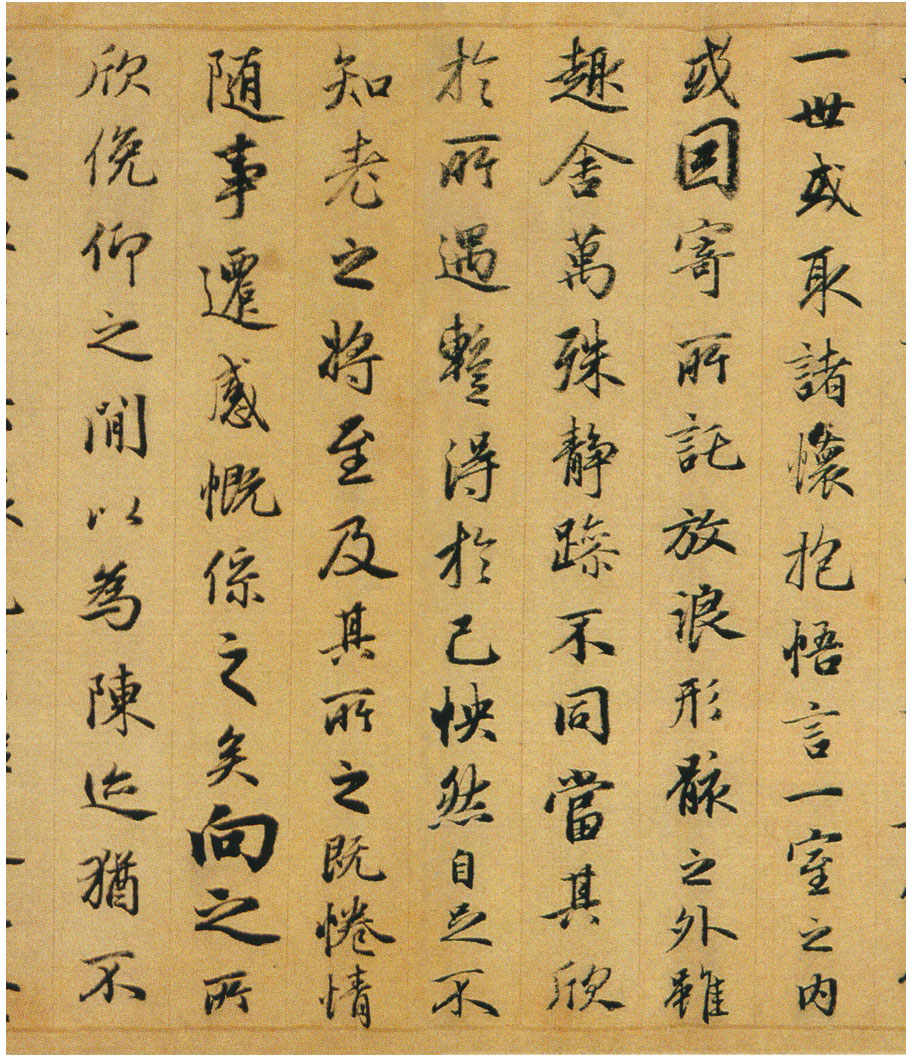 赵孟頫 《临兰亭序》(局部)绢本行书 27.4×102cm 北京故宫博物院藏