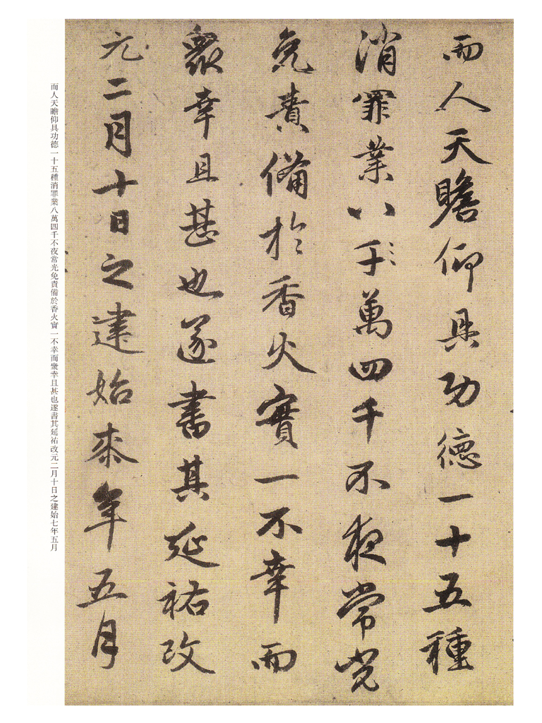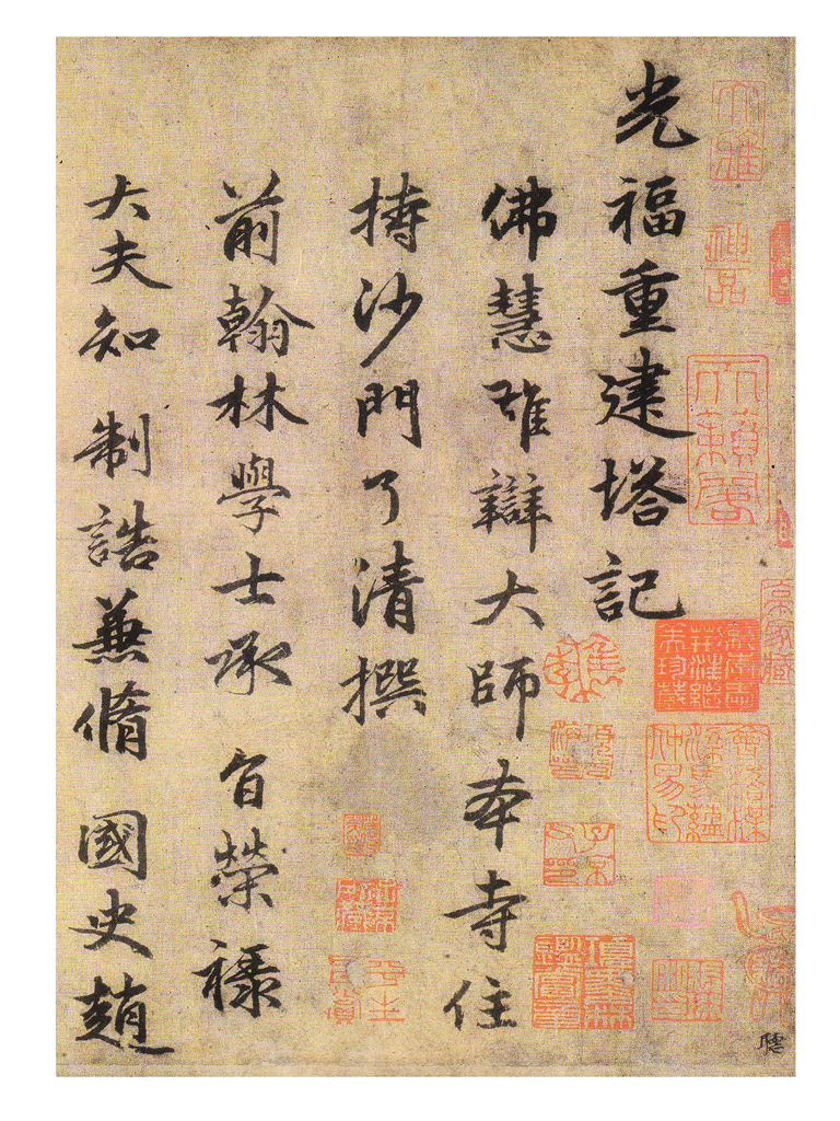 赵孟頫晚年行书作品《光福重建塔记》,纸本,全卷28.6cm×284cm。署款“至治元年(1321年)二月望日建”。卷末书六篆字“光福重建塔记”。钤“大雅”、“赵氏书印”朱文印。