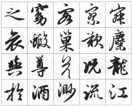 此卷中的三点水较多,但写法上并不强求多变,而大多只是行笔间的细微差异。附图中“酒”、“渺”二字采用上断下连的写法,这也是最常见的处理,只有“流”、“江”、“海”等少烽字作了变化。