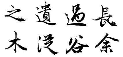 较之平捺的写法,斜捺在写法上丰富了许多,有一波三折者,如附图中“长”字;有轻入空收、含蓄蕴藉者,如“木”字;有逆笔涩进、隶意盎然者,如“从”字;有收锋抵腕,锋芒毕露者,如“谷”字;有回锋映带,笔断意连者,如“余”字。