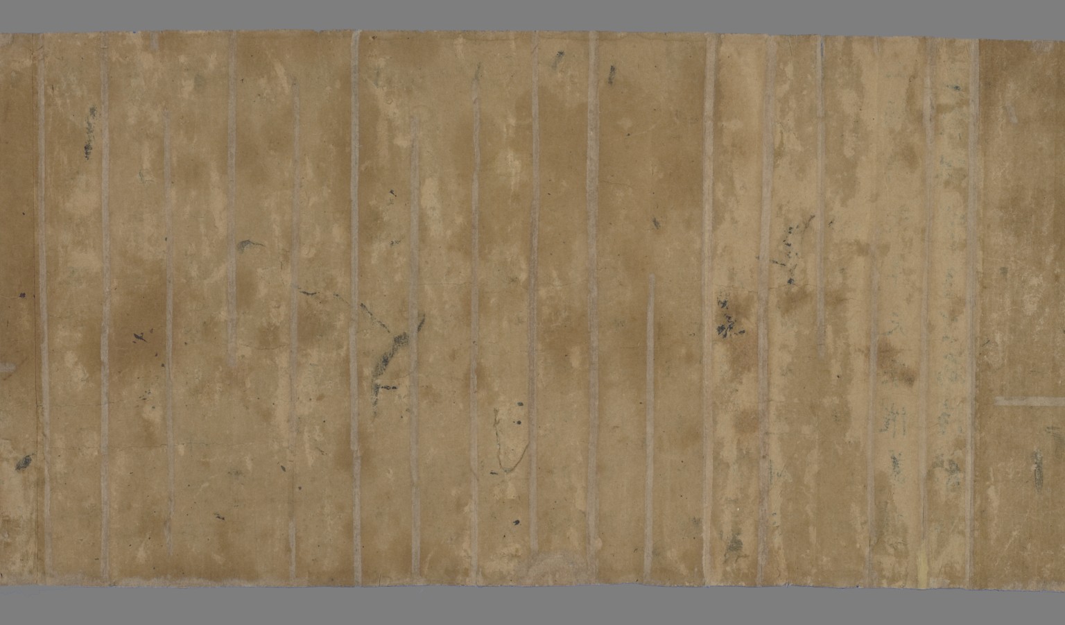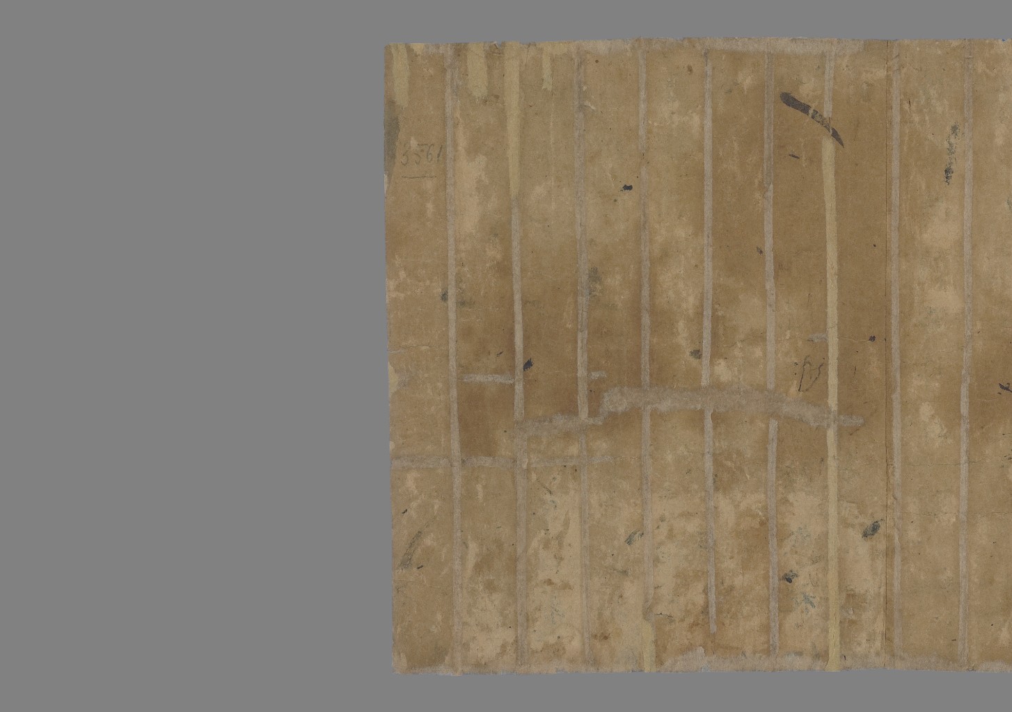 Rouleau de 3 ff. (f. 1 mutilée : 20 cm ; f. 2 : 42,5 cm ; f. 3 : 38 à 39 cm). Pap. homogène, ocre foncé. Verg. 11 par cm. Taches de gras. Quelques trous, fentes et échancrures. 25 × 100,5 à 101,5 cm